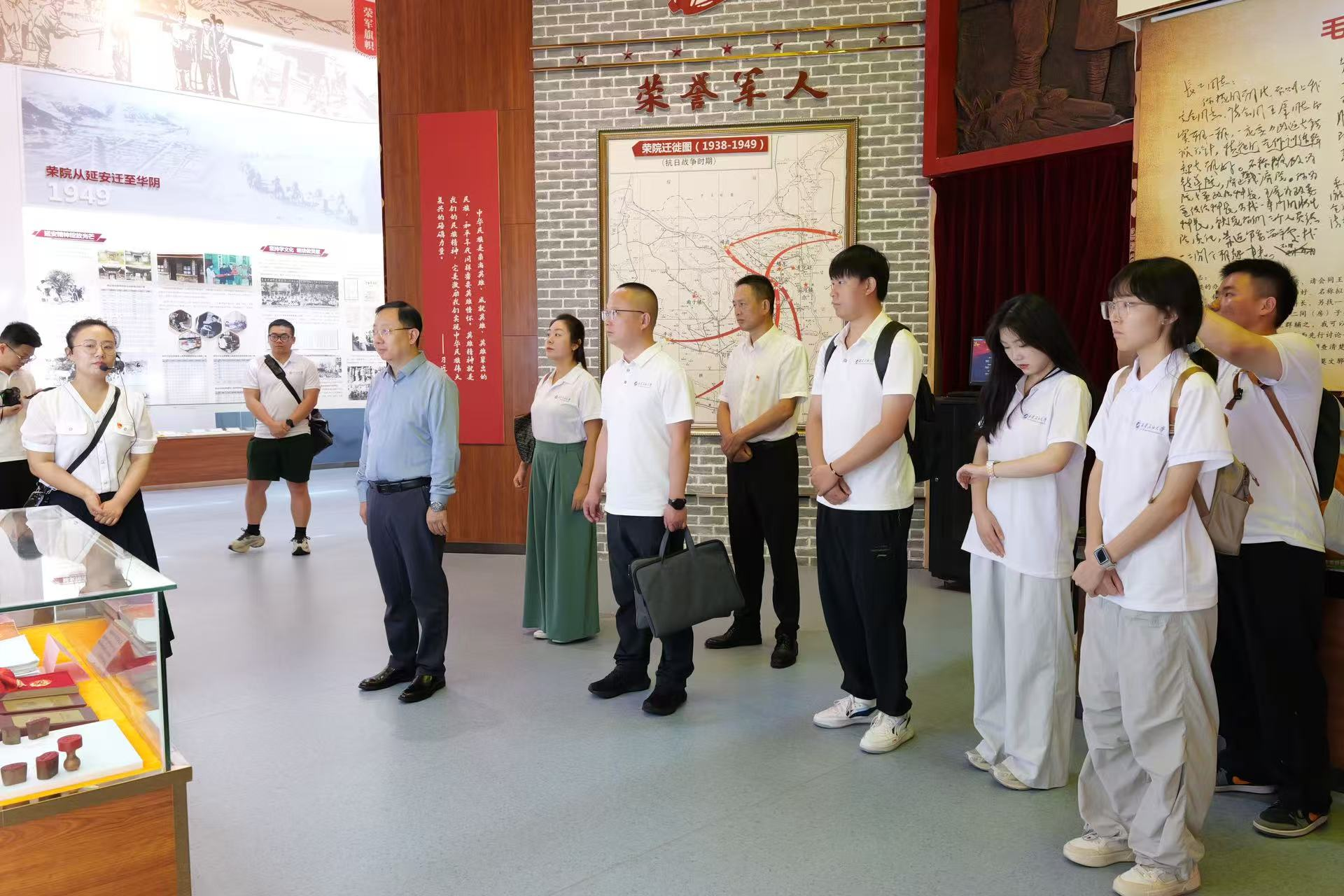 康云介紹了陜西省榮譽(yù)軍人康復(fù)醫(yī)院相關(guān)情況,代表院方對種宇宏一行表示熱烈歡迎,對實(shí)踐團(tuán)學(xué)生的服務(wù)精神和工作成效給予了高度評價(jià),并期待校院雙方進(jìn)一步深化交流合作。實(shí)踐團(tuán)成員代表李紀(jì)新匯報(bào)了實(shí)踐團(tuán)的基本概況,及實(shí)踐工作推進(jìn)情況,校院雙方舉行了大學(xué)生社會實(shí)踐基地簽約掛牌儀式。會后,種宇宏與實(shí)踐團(tuán)師生一同參觀了陜西省榮譽(yù)軍人康復(fù)醫(yī)院院史館。