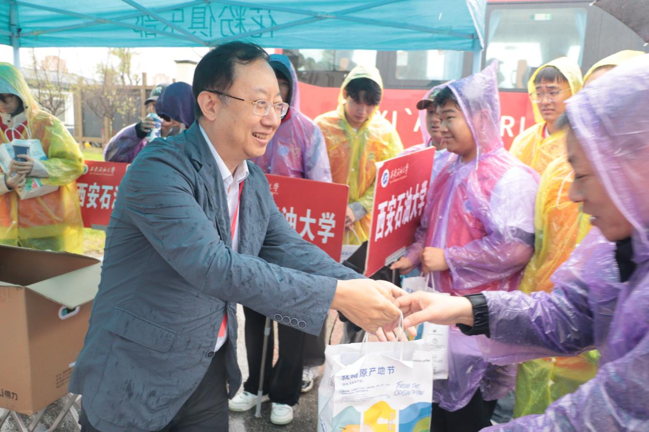 9月4日、5日,副校長(zhǎng)種宇宏分別到校內(nèi)迎新志愿服務(wù)點(diǎn)和鄠邑高鐵站迎新志愿服務(wù)點(diǎn),看望并慰問(wèn)冒雨堅(jiān)守崗位的迎新志愿者。