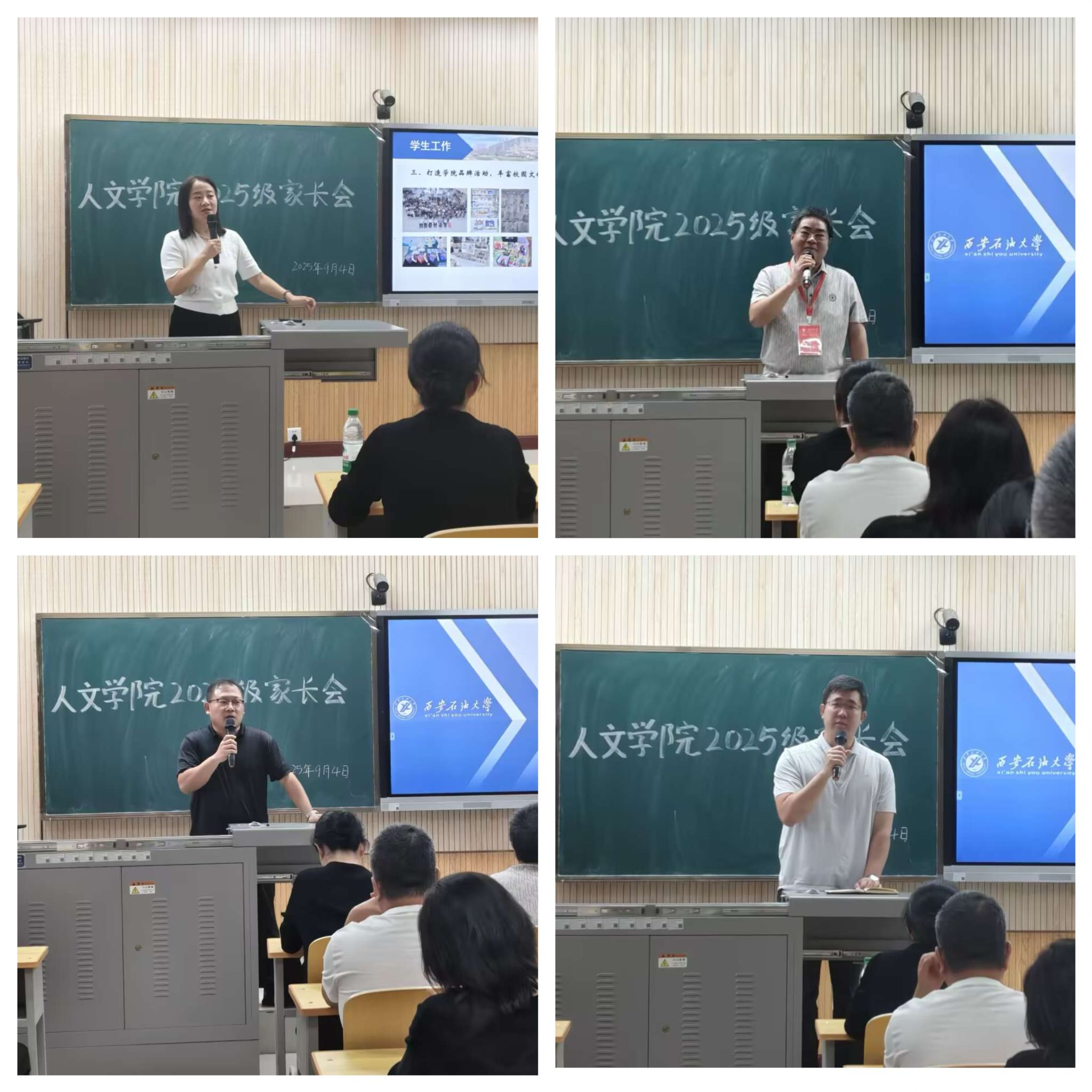 為深化家校協(xié)同育人機(jī)制,助力2025級(jí)新生平穩(wěn)過渡并快速融入大學(xué)生活,9月4日下午,人文學(xué)院于鄠邑校區(qū)崇文樓233教室舉行了新生家長(zhǎng)見面會(huì)。人文學(xué)院黨委書記余小勇,院長(zhǎng)方亭,副院長(zhǎng)方松林、蘭昆及2025級(jí)輔導(dǎo)員張馨元共同參會(huì),會(huì)議由學(xué)工辦主任范嘉欣主持,吸引了近300名新生家長(zhǎng)通過線上線下相結(jié)合的方式齊聚一堂,攜手繪就學(xué)子成長(zhǎng)藍(lán)圖。