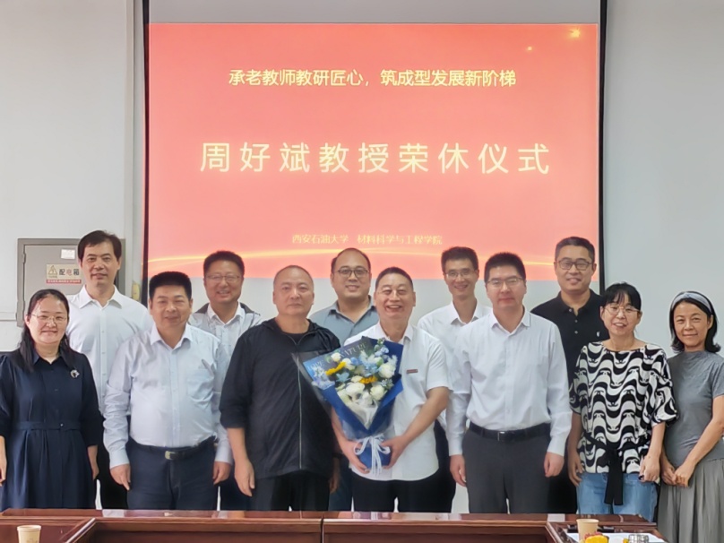 9月10日上午,在第41個(gè)教師節(jié)之際,材料科學(xué)與工程學(xué)院在鄠邑校區(qū)天工樓204會(huì)議室為2025年退休的周好斌教授舉行了隆重而溫馨的教職工榮休儀式。儀式由學(xué)院黨委書記耿嶺主持,副校長張驍勇教授、學(xué)院領(lǐng)導(dǎo)班子成員、各教研室主任和教師代表參加了儀式。