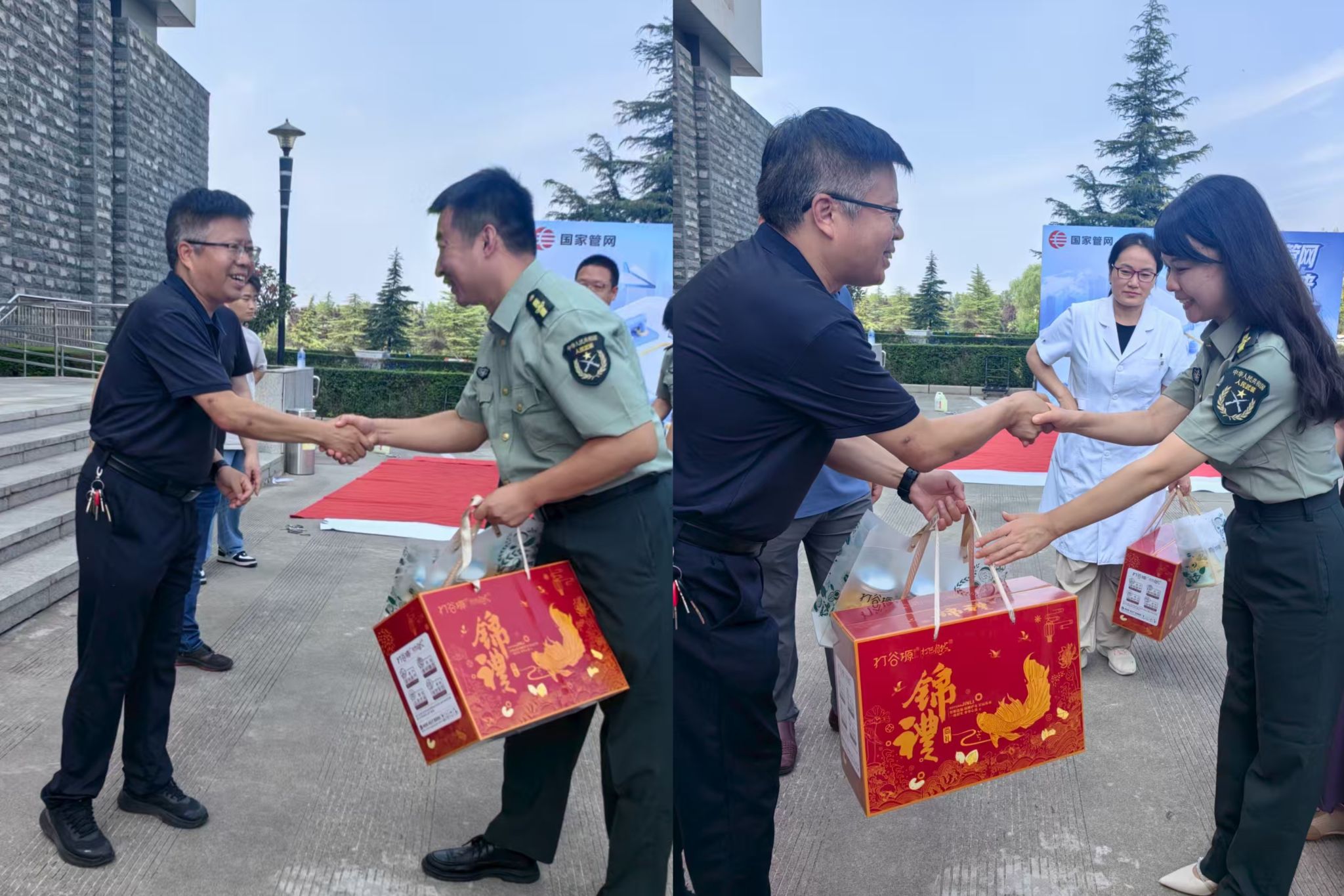 915日下午,副校長張驍勇帶領(lǐng)校工會(huì)在鄠邑校區(qū)圖書館前,慰問了我校軍訓(xùn)參訓(xùn)工作人員,并為大家送上慰問品。