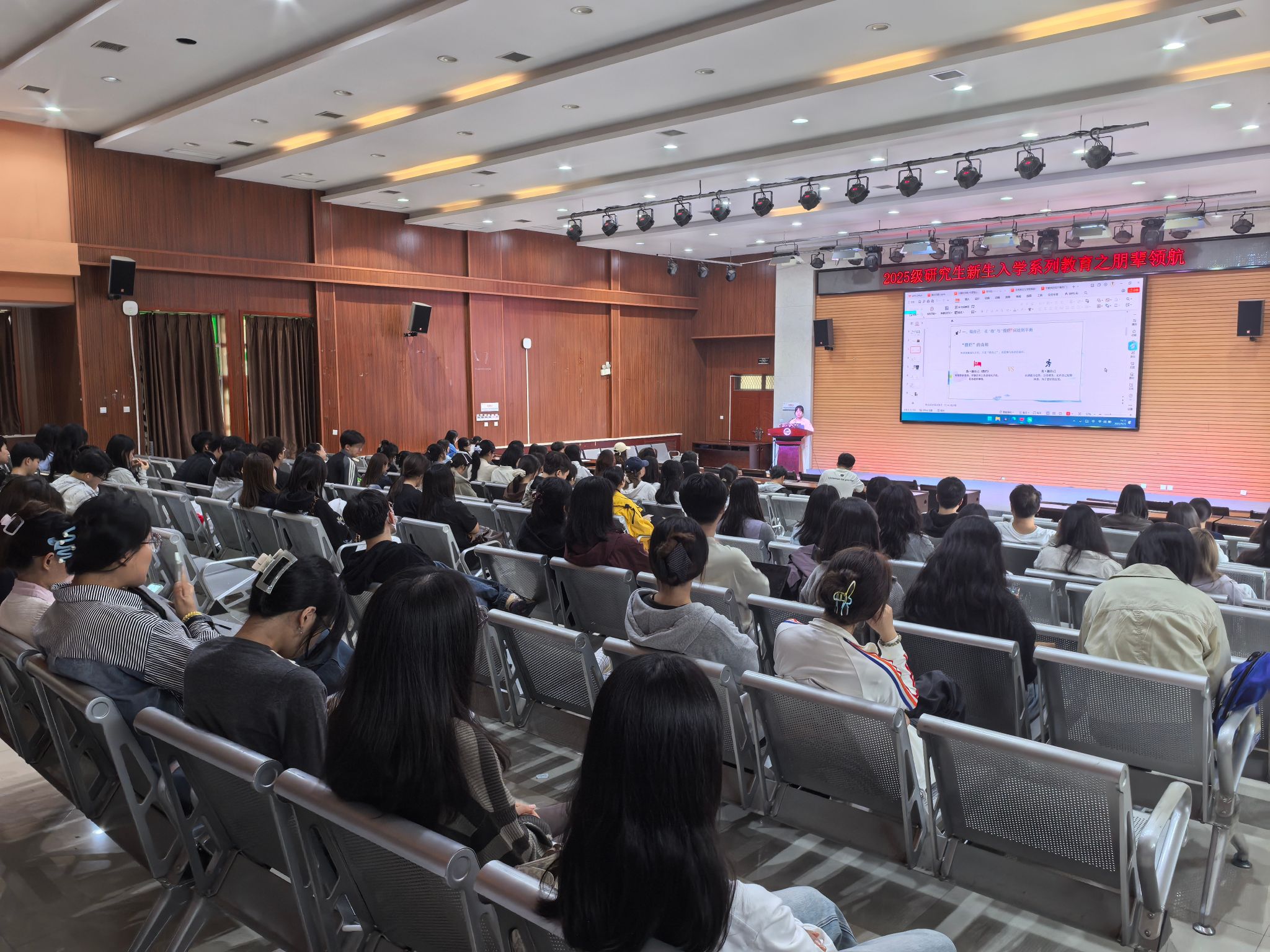 為幫助2025級(jí)研究生新生快速融入學(xué)術(shù)環(huán)境、明晰研途發(fā)展路徑,9月25日下午,由研究生工作部精心策劃的新生入學(xué)教育之朋輩領(lǐng)航交流分享會(huì)分別在雁塔校區(qū)第三會(huì)議室和鄠邑校區(qū)崇文樓118室舉行。本次活動(dòng)特邀我校8位來(lái)自不同學(xué)科專業(yè)的優(yōu)秀碩博士研究生擔(dān)任“領(lǐng)航人”,圍繞學(xué)術(shù)科研、學(xué)業(yè)規(guī)劃、導(dǎo)學(xué)交流等新生關(guān)切話題展開深度分享。他們?yōu)檠芯可律钌狭艘粓?chǎng)兼具深度與實(shí)用性的成長(zhǎng)指南,2025 級(jí)研究生新生代表共計(jì)300余人參加交流會(huì),現(xiàn)場(chǎng)氛圍熱烈。