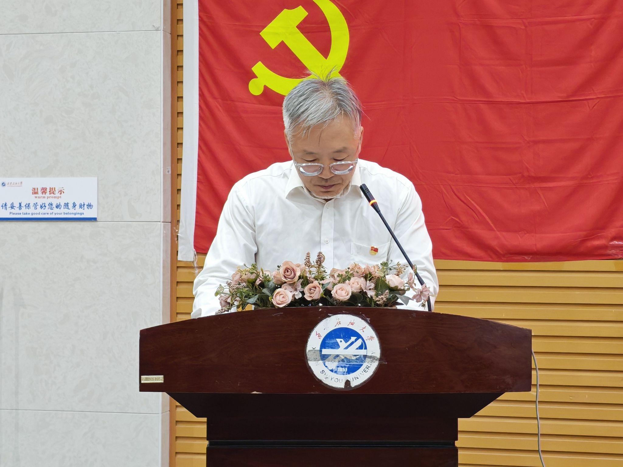 司馬文龍、艾二鑫、宋興淼為新一屆各學生黨支部授旗,艾二鑫為新一屆學生黨建辦公室干部頒發(fā)聘書。