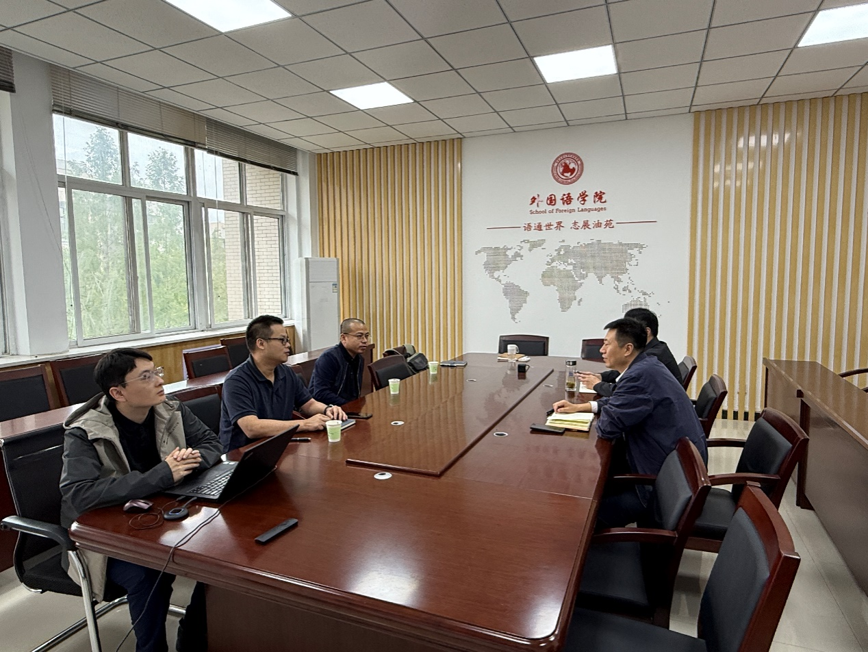 陳武副院長首先對(duì)林世賓總經(jīng)理、西安公司總經(jīng)理吳強(qiáng)一行的到訪致以熱烈歡迎,并結(jié)合學(xué)院辦學(xué)特色簡要介紹發(fā)展概況。他重點(diǎn)指出,學(xué)院長期聚焦“翻譯 + 石油能源” 交叉領(lǐng)域,以培養(yǎng)貼合行業(yè)需求的高水平應(yīng)用型翻譯人才為核心目標(biāo),近年來在課程體系優(yōu)化、實(shí)踐平臺(tái)搭建等方面積累了扎實(shí)基礎(chǔ)。陳武副院長強(qiáng)調(diào),雙方可通過資源互補(bǔ)進(jìn)一步提升學(xué)生的行業(yè)實(shí)戰(zhàn)能力與崗位適配度,推動(dòng)學(xué)院外語學(xué)科建設(shè)與石油行業(yè)發(fā)展需求深度綁定,為行業(yè)輸送更多 “懂翻譯、知能源” 的復(fù)合型人才。