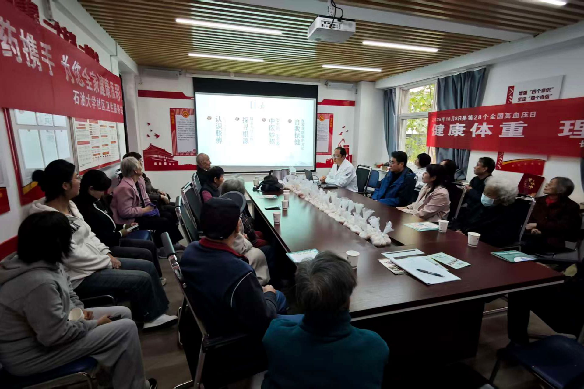 整場講座兼具現(xiàn)代醫(yī)學(xué)的嚴(yán)謹(jǐn)指導(dǎo)與傳統(tǒng)中醫(yī)的養(yǎng)生智慧,內(nèi)容干貨滿滿、實(shí)用性極強(qiáng),贏得在場聽眾的一致認(rèn)可?;顒?dòng)現(xiàn)場氛圍熱烈,老同志們專注聆聽、不時(shí)點(diǎn)頭,遇到重點(diǎn)內(nèi)容還拿出手機(jī)拍照記錄,互動(dòng)環(huán)節(jié)更是積極提問,與醫(yī)生深入交流健康困惑。講座結(jié)束后,校醫(yī)院還貼心準(zhǔn)備了定制小禮品,讓溫暖關(guān)懷直抵人心,進(jìn)一步提升了老同志們的參與感與幸福感。隨后,石油大學(xué)社區(qū)衛(wèi)生服務(wù)站負(fù)責(zé)人詹華斌向大家介紹了站點(diǎn)的公共服務(wù)項(xiàng)目,重點(diǎn)提及近期新增的理療項(xiàng)目與檢驗(yàn)檢查服務(wù),并特別說明可為行動(dòng)不便的老人提供“定制化上門醫(yī)療服務(wù)”,貼心舉措獲老同志們紛紛點(diǎn)贊。