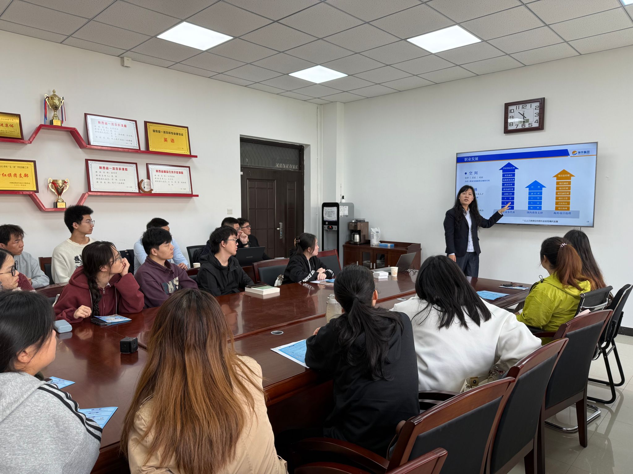 會(huì)上,公司招聘人員詳細(xì)介紹了企業(yè)的發(fā)展戰(zhàn)略、核心價(jià)值觀與業(yè)務(wù)布局,強(qiáng)調(diào)集團(tuán)以“致力于能源產(chǎn)業(yè)的變革與創(chuàng)新”為使命,秉持“務(wù)實(shí)、高效、創(chuàng)新”的核心價(jià)值觀,在能源工程服務(wù)與裝備制造領(lǐng)域持續(xù)發(fā)力,是中國能源領(lǐng)域國際化與特色化的踐行者與探索者。同時(shí),負(fù)責(zé)人還對招聘崗位的職責(zé)、人才畫像及發(fā)展前景進(jìn)行了全面闡釋。與會(huì)學(xué)生紛紛表示,海華集團(tuán)的業(yè)務(wù)領(lǐng)域與自身專業(yè)高度契合,為他們提供了在能源行業(yè)施展俄語專業(yè)技能的優(yōu)質(zhì)平臺(tái),通過此次招聘會(huì),他們對企業(yè)需求與職業(yè)發(fā)展路徑有了更清晰的認(rèn)知,也更加明確了自身的求職方向。