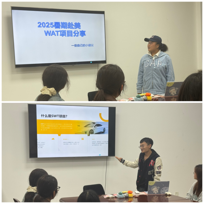 宣講會上,劉老師對赴美帶薪實習(xí)項目進(jìn)行了全面而深入的解讀。她首先詳細(xì)介紹了該項目的背景、宗旨及其在提升跨文化交際能力與職業(yè)競爭力方面的獨特優(yōu)勢。隨后,她重點講解了實習(xí)崗位的具體類型、申請資格與流程、以及項目的時間安排與費用構(gòu)成。劉老師還結(jié)合往屆參與學(xué)生的成功案例,生動分享了他們在美國的工作體驗、文化收獲與安全注意事項,并就同學(xué)們普遍關(guān)心的簽證辦理、住宿安排、薪酬待遇等問題進(jìn)行了耐心細(xì)致的解答,為同學(xué)們勾勒出一幅清晰而充滿機遇的海外實踐藍(lán)圖。前期參與項目學(xué)生也在現(xiàn)場為同學(xué)們分享了他們的親身經(jīng)歷。