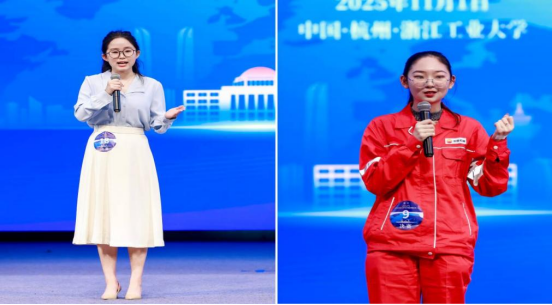大賽決賽分為命題演講和即興演講兩個環(huán)節(jié),全面考察選手的語言表達能力、邏輯思維深度以及臨場心理素質(zhì)。陸雨萌同學(xué)緊扣主題,結(jié)合自身專業(yè)學(xué)習(xí)與外語學(xué)習(xí)的實際,通過富有感染力的表達,充分展現(xiàn)了其扎實的語言功底和靈活的應(yīng)變能力。施瀾同學(xué)身著石油工服,在舞臺上詮釋著對能源安全的擔當,她既滿懷“鐵人精神”,又將個人志向與全球發(fā)展議題緊密接軌。兩位同學(xué)引經(jīng)據(jù)典、繪聲繪色的表現(xiàn)獲得了專家評委們的一致好評。