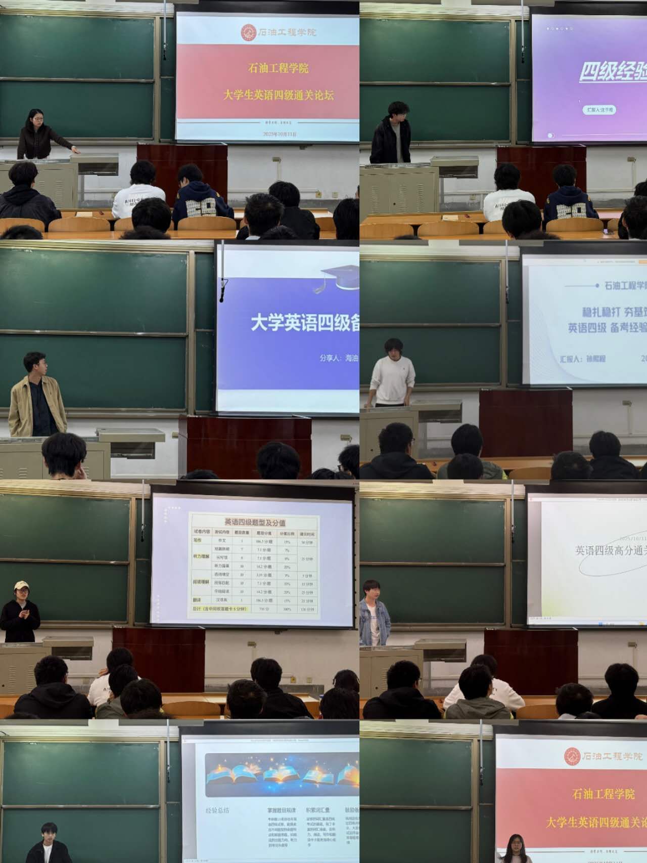 面對“四油一網(wǎng)”石油行業(yè)骨干企業(yè)不斷提高的人才能力要求,通過大學(xué)英語四級考試已成為學(xué)生求職與發(fā)展的重要基礎(chǔ)。學(xué)院積極構(gòu)建“早起步、全覆蓋、分階段”的四級培訓(xùn)體系,系統(tǒng)提升學(xué)生英語能力與求職競爭力。