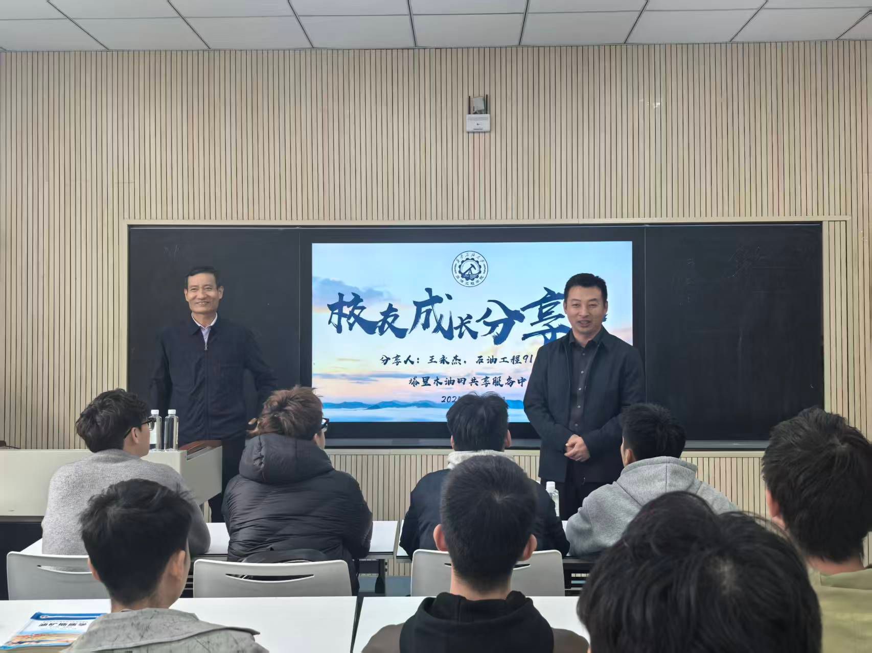 10月31日,學(xué)院邀請石油工程91屆校友王永杰現(xiàn)任塔里木油田共享服務(wù)中心主任),結(jié)合30余年行業(yè)經(jīng)驗和人生感悟,與2024級學(xué)生深入交流“大學(xué)成長與職業(yè)發(fā)展”;邀請2024屆校友陳科棋(現(xiàn)任職中海石油天津分公司職員)以“海上油田操作工”為例,從學(xué)生工作、求職技巧到職業(yè)發(fā)展路徑,為2023級學(xué)弟學(xué)妹提供貼近實際的“定制化”指導(dǎo)。