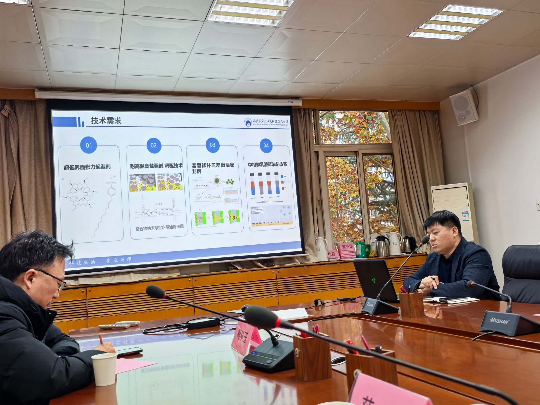 會上,李婷介紹了公司的基本情況,黃兆豐發(fā)布了公司的技術需求。柯從玉、陳世軍分別以“中相微乳液驅油劑篩選優(yōu)化及性能評價”“高溫高鹽油藏調(diào)剖堵水技術”“長慶油田低滲/超低滲油藏超低界面張力起泡劑”為題對公司的技術需求進行了揭榜匯報。隨后校企雙方就技術需求和研發(fā)方案細節(jié)進行了深入溝通交流。