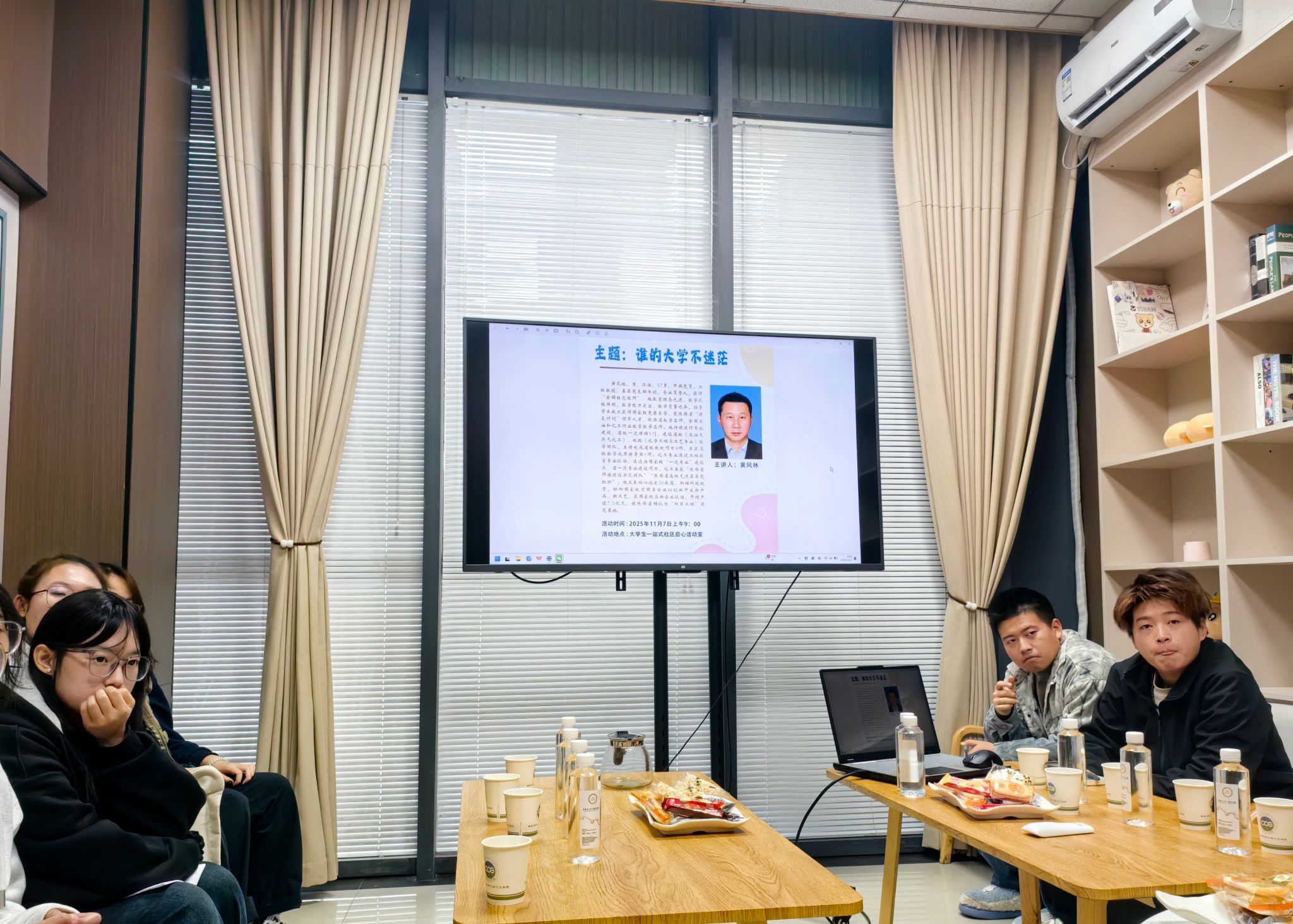 為持續(xù)搭建師生間常態(tài)化交流平臺(tái),幫助學(xué)生科學(xué)合理規(guī)劃大學(xué)生活,持續(xù)推進(jìn)學(xué)風(fēng)建設(shè)工作,11月7日上午,學(xué)院在“一站式”社區(qū)啟心活動(dòng)室舉行第十七期“師”“化”實(shí)說(shuō)活動(dòng)。本期邀請(qǐng)“全國(guó)模范教師”、二級(jí)教授黃風(fēng)林擔(dān)任主講,圍繞“誰(shuí)的大學(xué)不迷?!边@一主題,與同學(xué)們展開(kāi)了一場(chǎng)心靈的對(duì)話?;顒?dòng)由學(xué)院黨委副書(shū)記喬曉主持,2025級(jí)應(yīng)用化學(xué)專業(yè)學(xué)生代表參加。