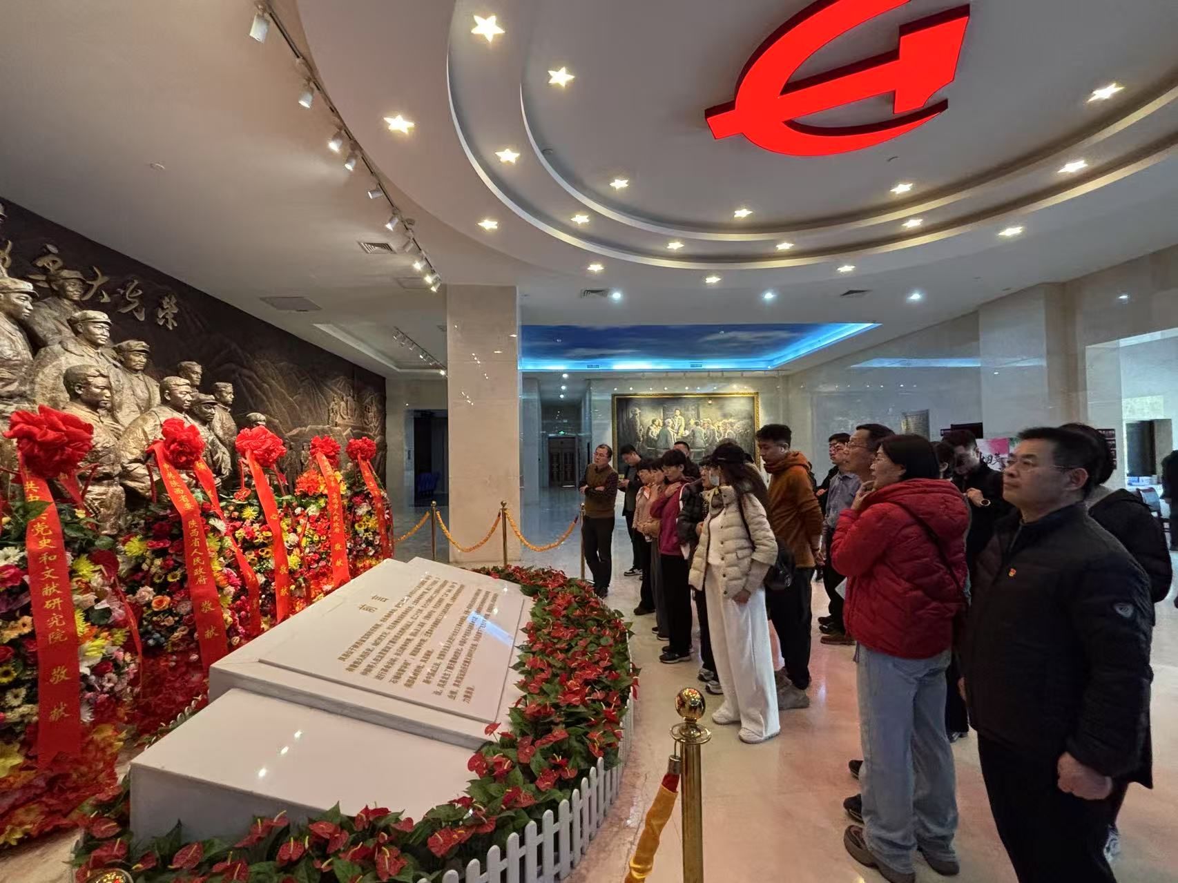 在鳳縣革命紀(jì)念館,廣場上矗立著無產(chǎn)階級革命家、陜甘邊區(qū)革命根據(jù)地的主要創(chuàng)建者和領(lǐng)導(dǎo)者、“兩當(dāng)兵變”主要領(lǐng)導(dǎo)者習(xí)仲勛和劉林圃的銅質(zhì)雕塑,雕塑背后青山巍峨、黨旗飄揚(yáng),雕塑上方刻著“牢記輝煌歷史 爭取更大光榮”十二個(gè)大字。老師們認(rèn)真參觀了習(xí)仲勛在鳳縣革命活動展、兩當(dāng)兵變主要領(lǐng)導(dǎo)人生平展、鳳縣革命歷史陳列展等五個(gè)展廳。一幅幅歷史圖片、一份份文獻(xiàn)史料、一件件革命文物,帶領(lǐng)老師們重溫老一輩革命家在風(fēng)雨征程中書寫的崢嶸革命歲月。
