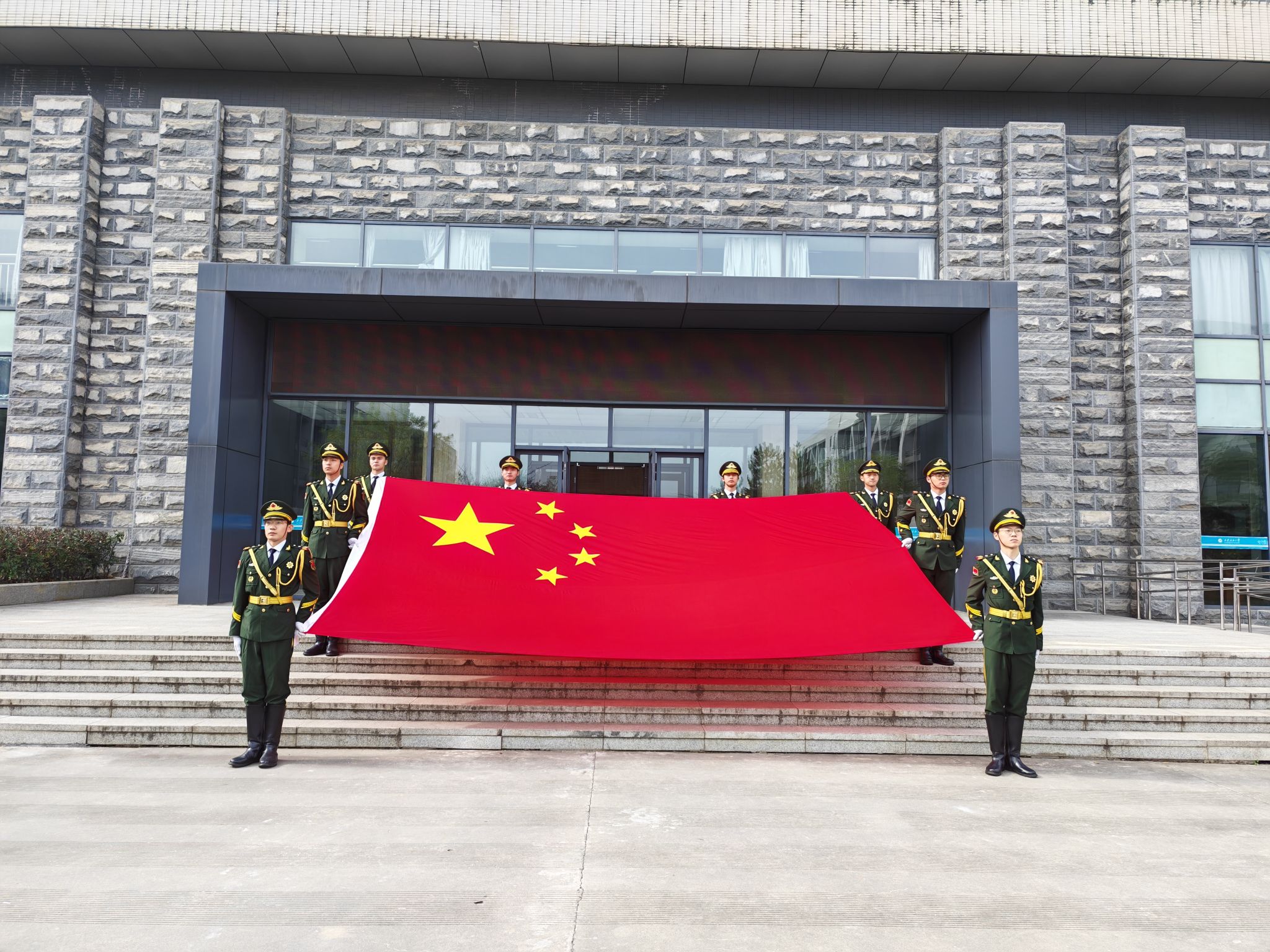 下午1時,儀式在莊嚴的氛圍中開始。學生工作處副處長畢軼慧宣讀了國旗獲贈證書。校團委副書記王軍策對該面國旗進行了簡要介紹。