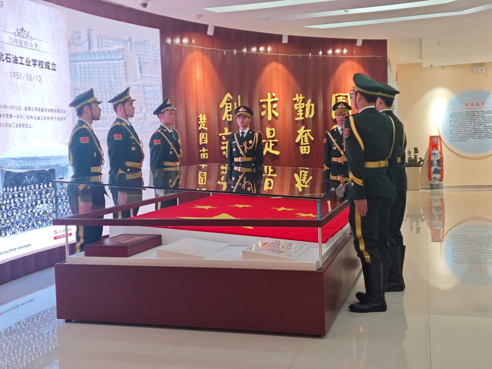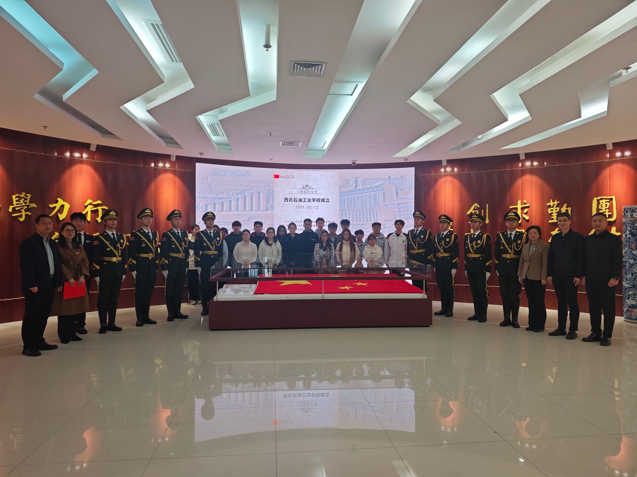 最后,檔案館館長馬超在總結發(fā)言中表示,國旗入館,是榮譽更是責任。通過講述該面國旗與校慶日的特殊淵源,校史館將串聯(lián)起學校與祖國能源事業(yè)同頻共振的發(fā)展故事。我們將以國旗為指引,賡續(xù)紅色血脈,傳承石油精神,讓愛國情、強國志、報國行在西石大的校園里代代相傳,共同書寫學校高質(zhì)量發(fā)展與祖國能源事業(yè)繁榮的嶄新篇章!