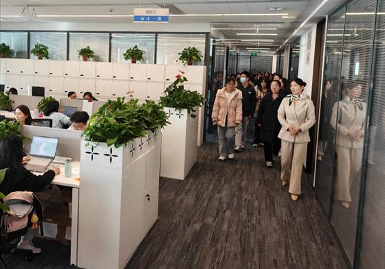 在工作人員引導(dǎo)下,師生一行參觀了事務(wù)所的審計一部、工程造價部、技術(shù)支持部及員工共享空間等。通過實地走訪,同學(xué)們對事務(wù)所的組織架構(gòu)與業(yè)務(wù)流程有了更為直觀的認(rèn)識,切身感受到立信嚴(yán)謹(jǐn)專業(yè)的工作氛圍和以人為本的員工關(guān)懷,深刻體會到其團(tuán)隊協(xié)作精神與客戶服務(wù)理念。