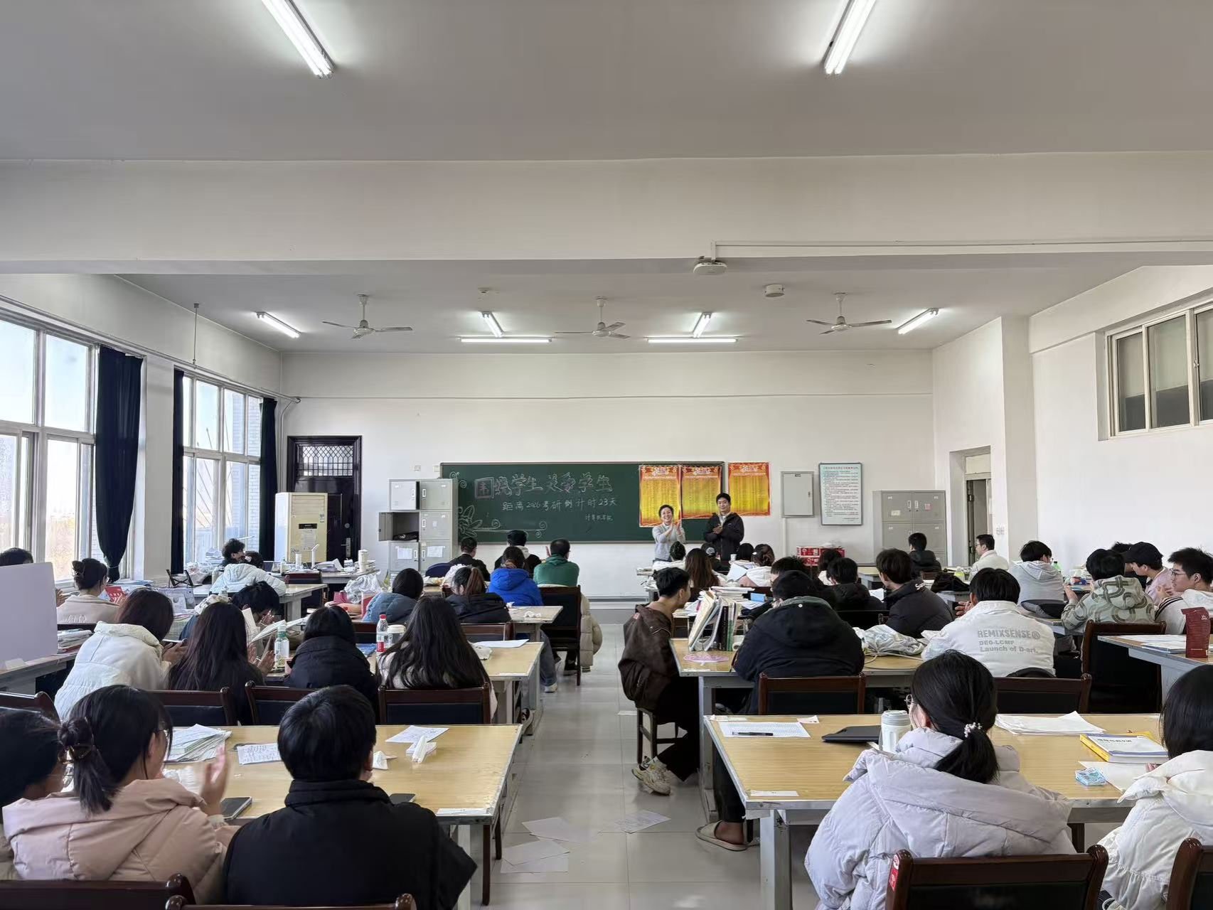 隨后,王瑩副書記作動員講話,向同學們提出三點殷切囑托:一是以“堅持”錨定方向,跑出沖刺“加速度”;王瑩鼓勵同學們:備考的疲憊與焦慮是常態(tài),但每一份熬夜整理的筆記、每一次反復推演的習題,都是通往成功的階梯。學院會始終做大家最堅實的后盾,無論是復習資料的協(xié)調(diào)還是心理狀態(tài)的調(diào)適,老師們都會第一時間提供支持。二以“節(jié)律”守護狀態(tài),筑牢備考“健康線”;她特別提醒同學們:沖刺階段切勿陷入“疲勞戰(zhàn)”,要保持規(guī)律作息,保證每日7小時睡眠;飲食以清淡營養(yǎng)為主,避免因身體不適影響復習節(jié)奏。三以“穩(wěn)心”應(yīng)對挑戰(zhàn),練就應(yīng)考“平常心”。王瑩建議同學們:淡化“結(jié)果焦慮”,專注當下的知識鞏固;遇到情緒波動時,可通過與輔導員談心、與研友交流等方式疏解,以從容、自信的心態(tài)迎接考試。