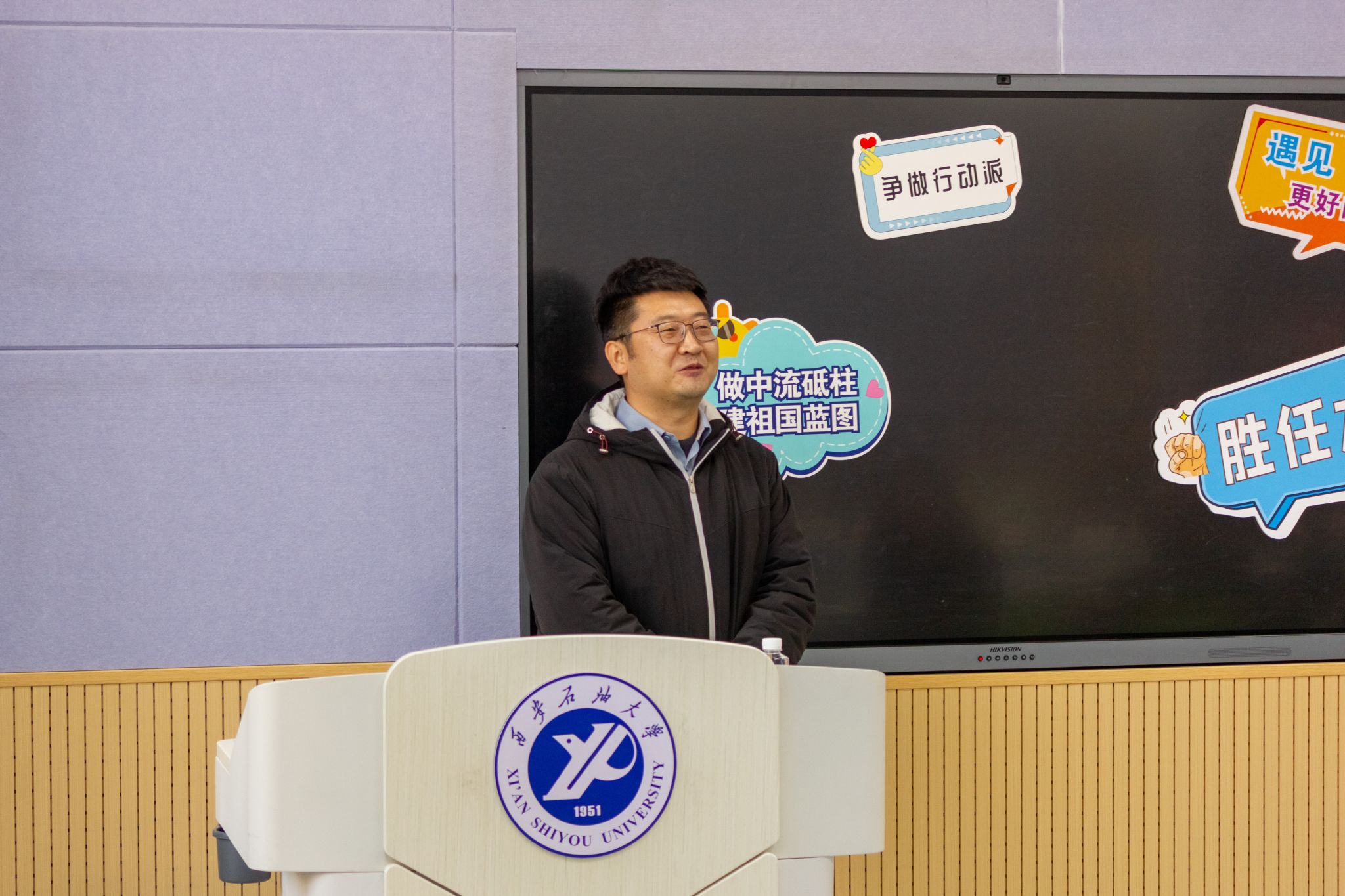 為進一步加強班級建設(shè),提升班長工作能力與班級管理水平,12月1日,石油工程學(xué)院班級建設(shè)圓桌派第251201期班長“油”話說在鄠邑校區(qū)博覽樓117多媒體教室舉辦。學(xué)院黨委副書記艾二鑫,教師代表、三級教授、博士生導(dǎo)師石軍太,班主任代表王玉龍及院內(nèi)外班長代表參加,活動由學(xué)生工作辦公室副主任史陽主持。