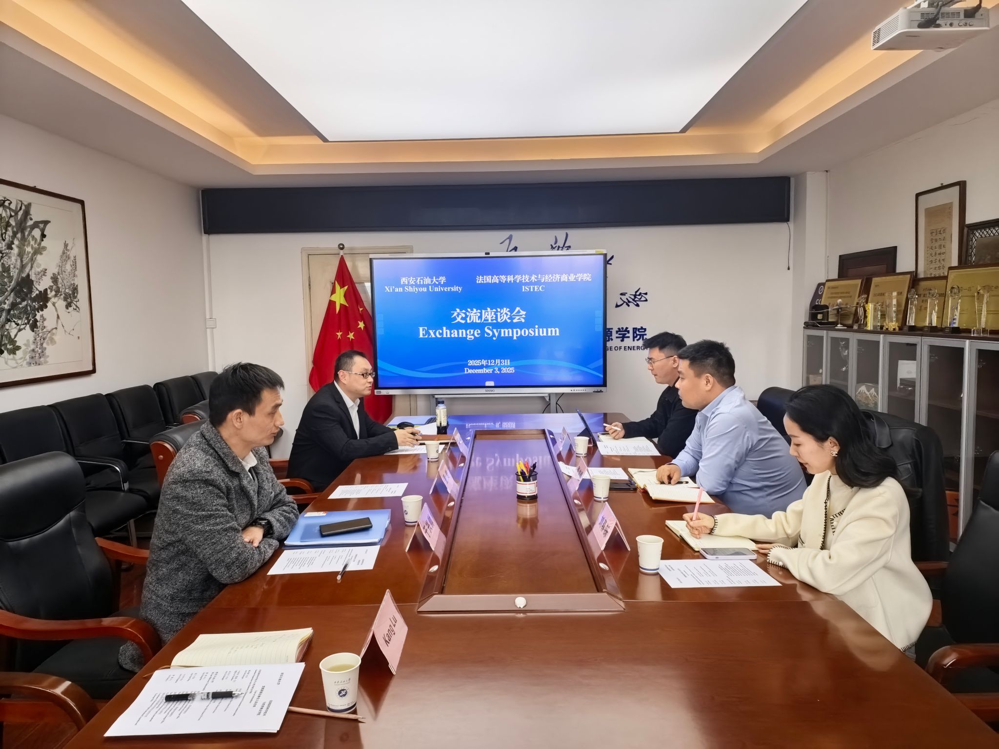 12月3日下午,法國高等科學(xué)技術(shù)與經(jīng)濟(jì)商業(yè)學(xué)院代表團(tuán)來我校交流座談。法國高等科學(xué)技術(shù)與經(jīng)濟(jì)商業(yè)學(xué)院陜西省外事主任魏鴻儒、四川省教學(xué)主任劉春鑠、陜西省外事主任助理徐圣杰,我校國際合作與交流處領(lǐng)導(dǎo)及相關(guān)工作人員參會。