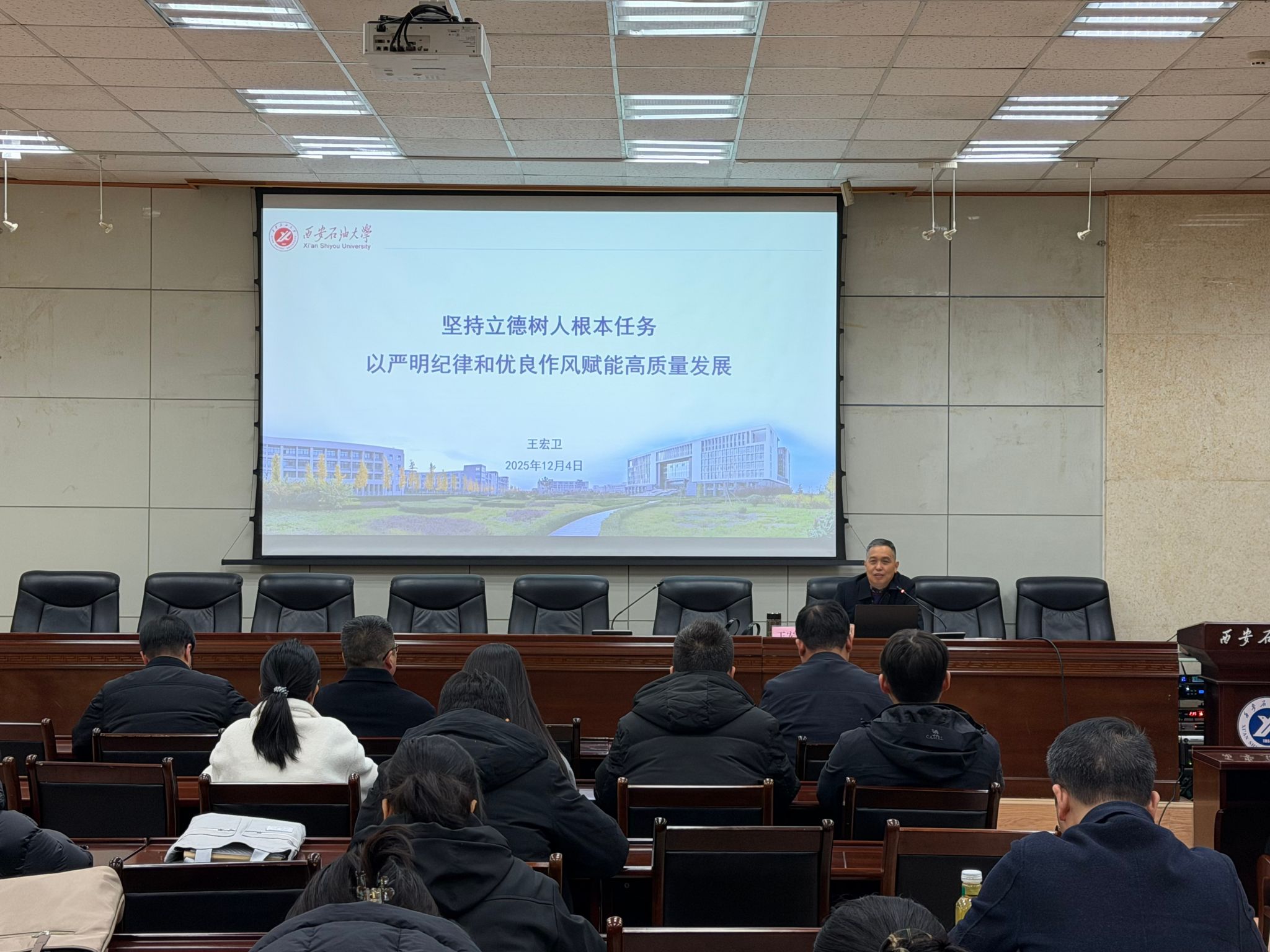 12月4日下午,管道工程學(xué)院黨委在雁塔校區(qū)西階第三會議室開展了“學(xué)黨章鑄忠誠,悟思想強使命”專題學(xué)習(xí)班第二講。本次課程由校紀委副書記王宏衛(wèi)講授,主題為“堅持立德樹人根本任務(wù),以嚴明紀律和優(yōu)良作風(fēng)賦能高質(zhì)量發(fā)展”,學(xué)院全體教職工、研究生黨員代表共70余人參加學(xué)習(xí)。會議由學(xué)院黨委副書記高亮主持。