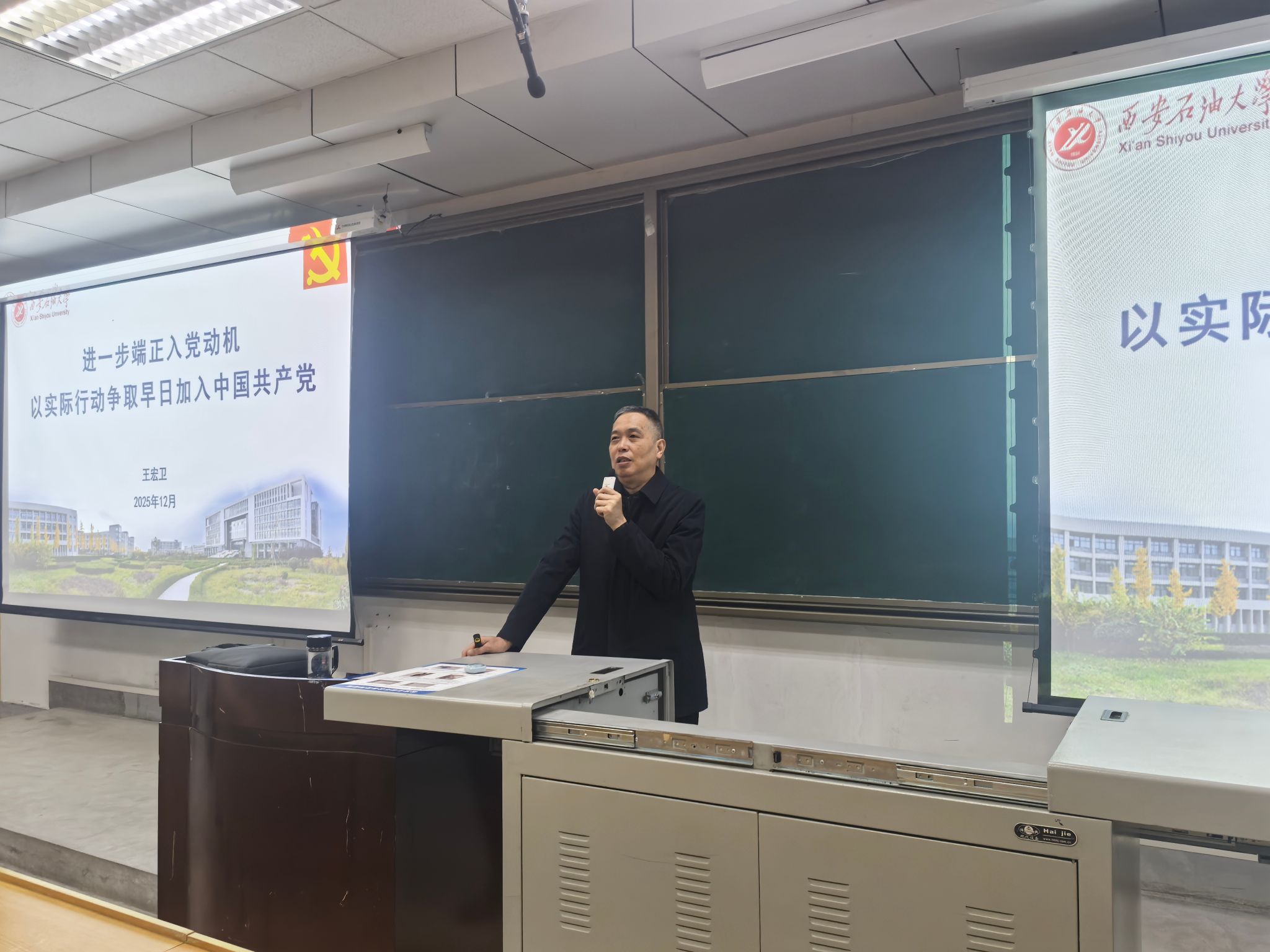 王宏衛(wèi)結(jié)合《中國共產(chǎn)黨黨員教育管理工作條例》《全國黨員教育培訓(xùn)規(guī)劃》《中國共產(chǎn)黨紀律處分條例》等文件要求,要求全體學(xué)員把端正入黨動機,堅守初心使命作為爭取入黨的首要課題;其次對標《中國共產(chǎn)黨章程》《關(guān)于新形勢下黨內(nèi)政治生活的若干準則》等制度規(guī)范,強調(diào)全體學(xué)員要將錘煉黨性修養(yǎng)、提升政治品格作為自我提升的核心任務(wù);他結(jié)合高校黨建實際,通過剖析大學(xué)生入黨積極分子培養(yǎng)考核典型案例,引導(dǎo)學(xué)員將理論認知轉(zhuǎn)化為實踐自覺,在知行合一中筑牢信仰之基?!扒嗄晔屈h的事業(yè)的繼承者,端正入黨動機是入黨的第一步,更是一生的必修課?!彼銊钊w學(xué)員牢記共產(chǎn)黨人初心使命,堅定理想信念,恪守黨員品質(zhì),積極向黨組織靠攏。