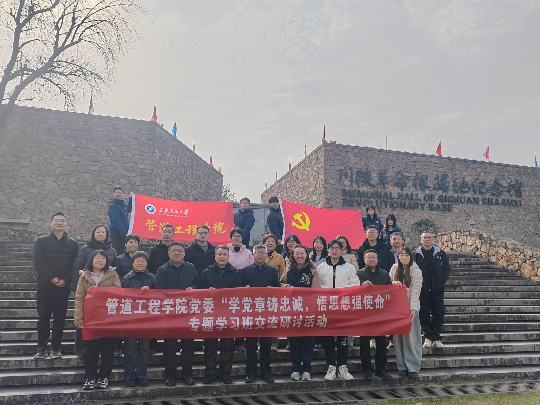 12月6日,管道工程學(xué)院黨委赴陜西漢中川陜革命根據(jù)地紀(jì)念館開展“學(xué)黨章鑄忠誠(chéng),悟思想強(qiáng)使命”專題學(xué)習(xí)。校黨委委員、副校長(zhǎng)張驍勇帶隊(duì)參觀全程指導(dǎo)并現(xiàn)場(chǎng)講授微黨課,學(xué)院師生代表20余人參加活動(dòng)。