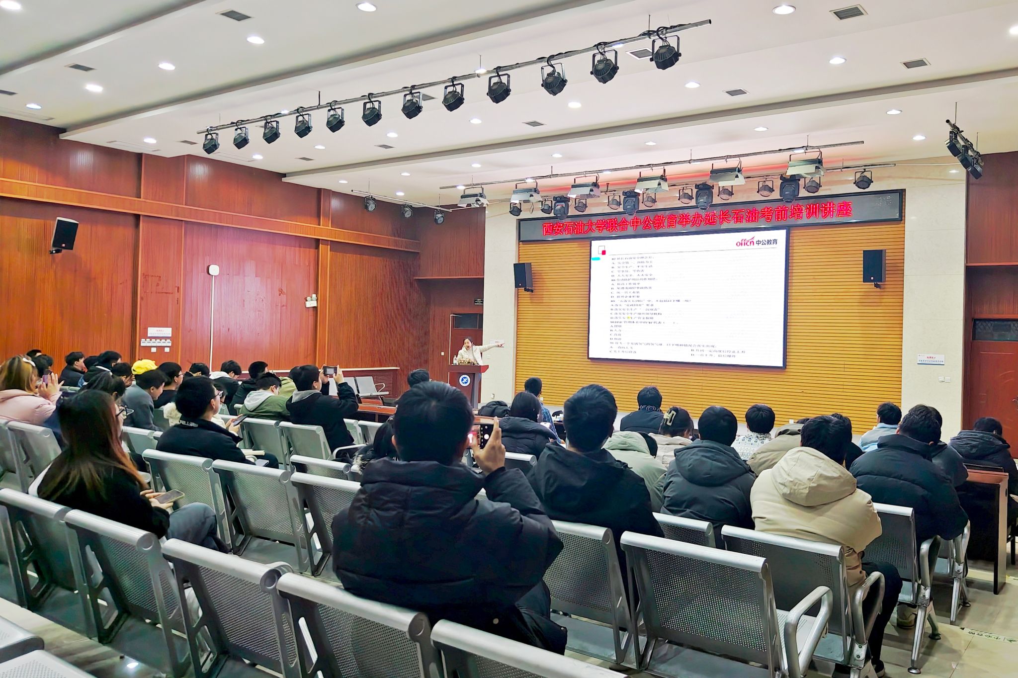 為助力2026屆畢業(yè)生精準把握延長石油招聘考試核心要點,提升應試競爭力,切實打通就業(yè)服務“最后一公里”,12月9日晚,就業(yè)創(chuàng)業(yè)指導中心聯(lián)合中公教育在鄠邑校區(qū)崇文樓118報告廳舉辦延長石油專題考前培訓講座。本科生、研究生100余人參加培訓。