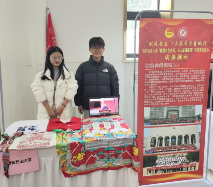 在實(shí)踐成果展示環(huán)節(jié),我校展位通過精心制作的宣傳展板和生動(dòng)豐富的實(shí)踐活動(dòng)資料,全面呈現(xiàn)了我校近年來在實(shí)踐育人方面取得的扎實(shí)成果。特別是我校學(xué)生基于延安社會(huì)實(shí)踐成果自主設(shè)計(jì)的絲巾、帆布包、文化衫、卡套等系列文創(chuàng)產(chǎn)品,將紅色文化基因與青年創(chuàng)意設(shè)計(jì)相融合,以生動(dòng)鮮活的實(shí)物形態(tài)展現(xiàn)出革命圣地的文化魅力與我校學(xué)子的精神風(fēng)采,吸引了眾多領(lǐng)導(dǎo)、嘉賓和兄弟院校師生的駐足欣賞與交流,成為展會(huì)現(xiàn)場(chǎng)備受關(guān)注的亮點(diǎn)之一,獲得了廣泛贊譽(yù)。