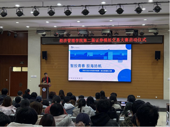 12月16日,經(jīng)濟管理學院與交通銀行南二環(huán)支行、中信證券陜西分公司聯(lián)合舉辦的“智投青春 股海揚帆”——經(jīng)濟管理學院第二屆證券模擬交易大賽啟動儀式,在鄠邑校區(qū)崇文樓118報告廳成功舉行。經(jīng)濟管理學院副院長李春霄、交通銀行南二環(huán)支行副行長史瑋、中信證券陜西分公司業(yè)務處理中心副總經(jīng)理王艷麗出席儀式,參賽學生代表共同參加。啟動儀式由學院學工辦副主任張碩主持。