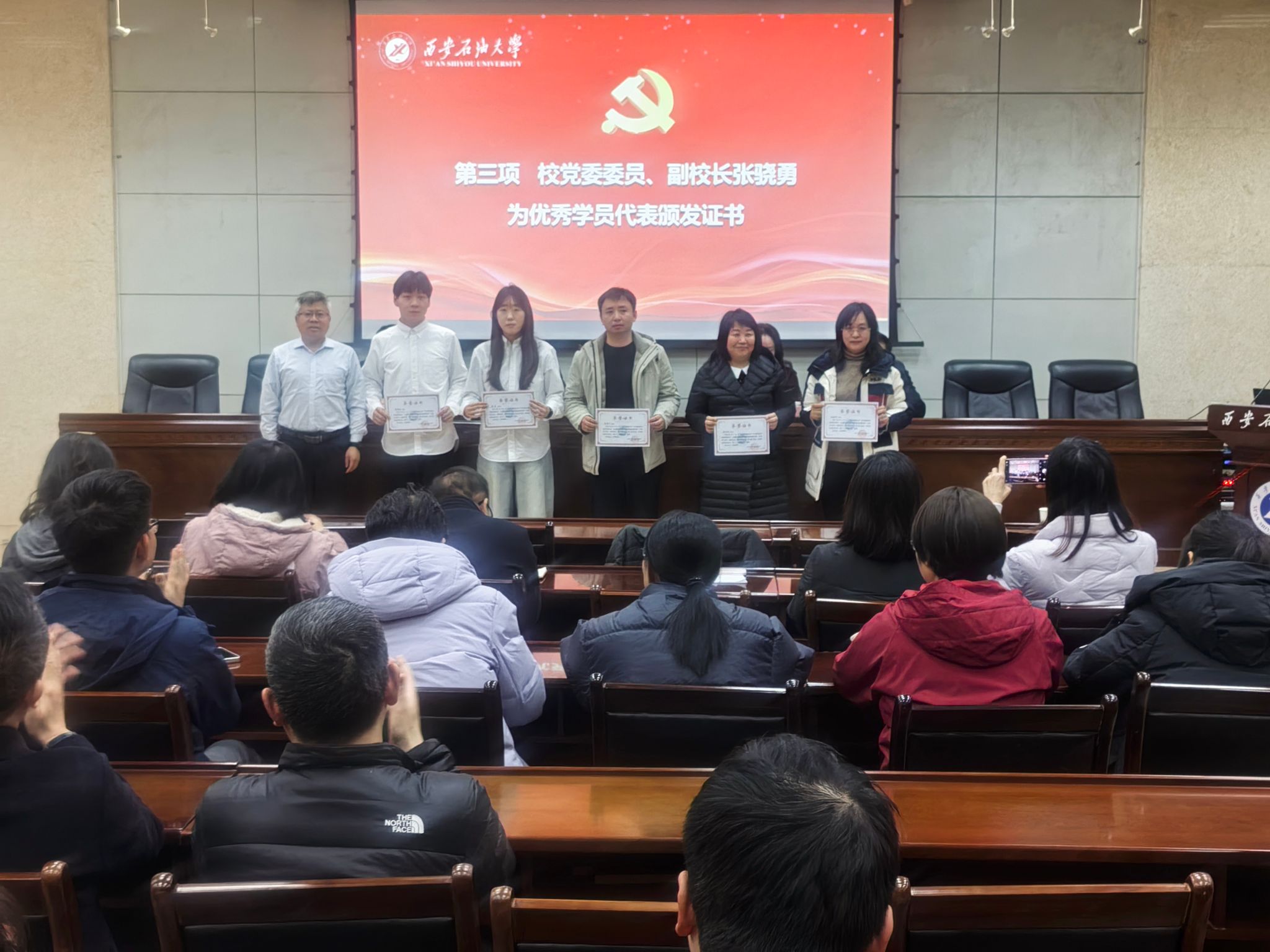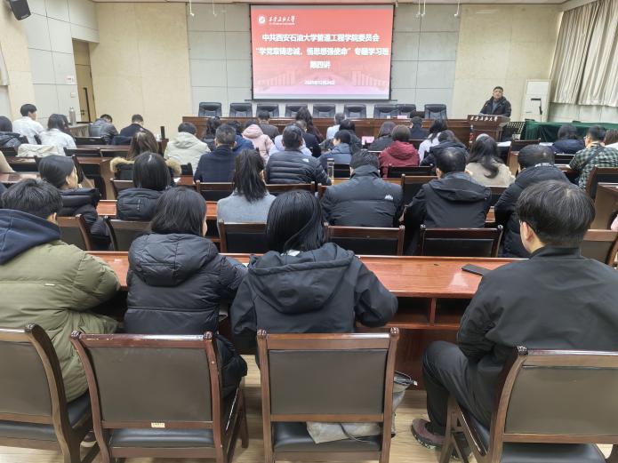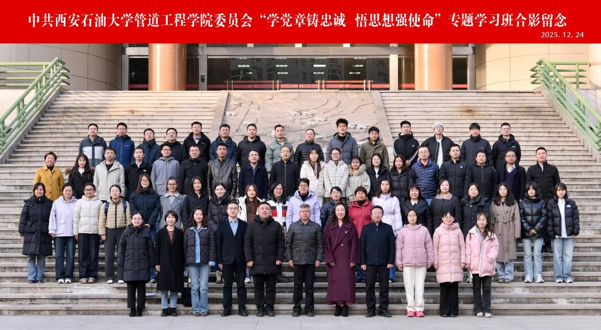 2025年12月24日下午,管道工程學院黨委在雁塔校區(qū)西階第三會議室開展“學黨章鑄忠誠,悟思想強使命”專題學習班第四講暨結業(yè)儀式。校黨委委員、副校長張驍勇出席并作第四講專題報告,學院班子全體成員、全體教工黨員、研究生黨員代表70人參加儀式。儀式由學院黨委副書記高亮主持。