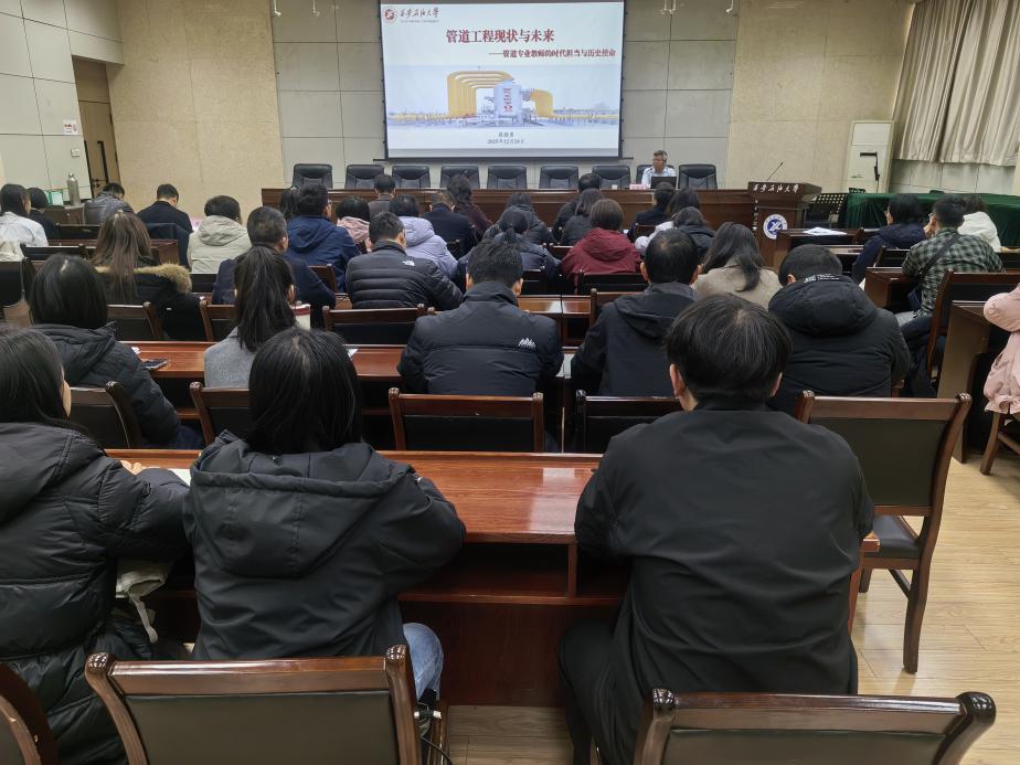 會上,張驍勇對全院師生從專業(yè)視角分別按照油氣儲運、安全工程、土木工程三個方向各提出三點希望:一是“鑄魂”,重塑課程思政新內涵。對于油氣儲運專業(yè),要在講授“全國一張網(wǎng)”格局、跨國管道戰(zhàn)略意義時,深刻揭示其對于國家能源自主、地緣政治博弈的核心價值,培養(yǎng)學生作為 “國家能源系統(tǒng)調度師” 的格局與擔當。對于土木工程專業(yè),要在講授管道穿跨越工程、地質災害防治時,弘揚 “攻堅克難、打造不朽工程” 的工匠精神,將“隱蔽工程、百年品質”的職業(yè)倫理深植學生心中。對于安全工程專業(yè),要深刻闡釋管道安全是 “總體國家安全觀”在能源領域的具體體現(xiàn),將安全職責從“避免生產(chǎn)事故”提升到 “捍衛(wèi)國家經(jīng)濟生命線和公共安全” 的崇高境界;二是“強技”,更新知識與能力體系。對于油氣儲運專業(yè),教學重點要從“工藝設計”向 “系統(tǒng)優(yōu)化” 和 “智能決策” 轉變,培養(yǎng)學生運用大數(shù)據(jù)和AI工具解決復雜管網(wǎng)問題的能力。對于土木工程專業(yè),要教導學生不僅關注“如何建得成”,更要思考“如何建得智能、如何感知自身狀態(tài)”。對于安全工程專業(yè),要教授基于大數(shù)據(jù)和人工智能的風險預測預警、基于數(shù)字孿生的應急推演與決策、復雜系統(tǒng)韌性評估等現(xiàn)代安全工程方法;三是“力行”,創(chuàng)新教學與科研實踐。對于油氣儲運專業(yè),要開發(fā)基于數(shù)字孿生的管網(wǎng)模擬仿真教學平臺,讓學生在人機互動中學習智能調度,主動對接國家管網(wǎng)“七大方向”,在摻氫輸送、大型管網(wǎng)仿真軟件自主化等關鍵領域開展應用型研究。對于土木工程專業(yè),繼續(xù)推廣BIM與 GIS在管道設計課程中的深度融合應用,聚焦管道新型材料、高效智能建造技術等領域,推動科研成果向工程標準和教學案例轉化。對于安全工程專業(yè),要利用虛擬現(xiàn)實技術構建管道泄漏、地質災害、網(wǎng)絡攻擊等沉浸式應急演練場景。圍繞國家管網(wǎng)“本質安全”方向,在管道裂紋智能識別與生長預測、多災害耦合致災機理、系統(tǒng)安全彈性恢復等前沿領域開展研究,為行業(yè)提供先進的理論和工具支持。