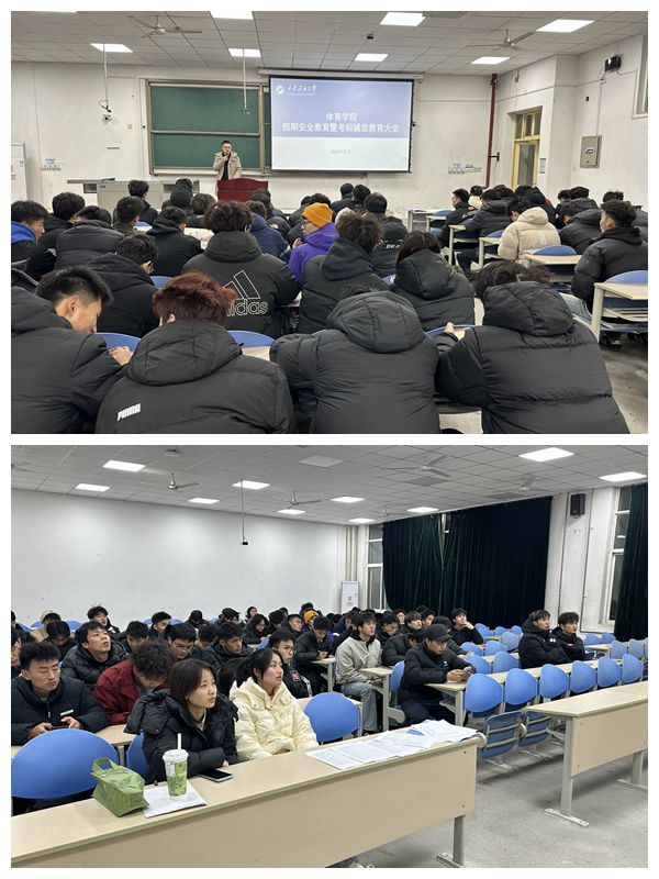 為進(jìn)一步加強(qiáng)考風(fēng)考紀(jì)教育,培養(yǎng)學(xué)生誠(chéng)信品格,規(guī)范考場(chǎng)秩序,同時(shí),在節(jié)假日來(lái)臨之際,提高學(xué)生的安全意識(shí),筑牢校園安全防線,12月22日至24日,體育學(xué)院各年級(jí)組織召開了考風(fēng)考紀(jì)暨離校安全教育大會(huì),學(xué)院學(xué)工辦主任姜國(guó)平,輔導(dǎo)員張澤正以及全體本科生參會(huì)。