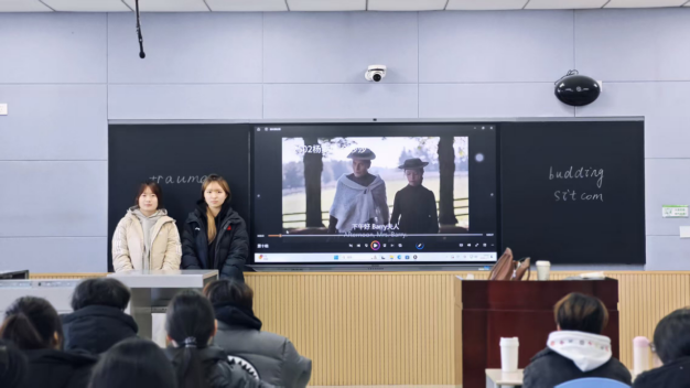跨文化影視作品配音實踐是學(xué)院在跨文化傳播與語言能力培養(yǎng)方面的創(chuàng)新教學(xué)舉措。課程通過五天的緊湊安排,圍繞影視解碼、語言訓(xùn)練、文化轉(zhuǎn)譯與藝術(shù)呈現(xiàn)的多維度目標進行教學(xué)。該課程由外國語學(xué)院的拓葳老師和林怡清老師全程指導(dǎo),參與學(xué)生包括2025級全體英語專業(yè)學(xué)生。學(xué)生在小組合作中,完成劇本賞析、文化意象適配、角色情感揣摩以及語音語調(diào)訓(xùn)練等實踐環(huán)節(jié),并在最后通過配音實踐展示對英美影視作品的再現(xiàn)與文化傳遞。課程強調(diào)配音不僅是語言技能的訓(xùn)練,也是文化情感的傳遞。通過五天的實踐,學(xué)生們不僅增強了語言能力,還提升了文化適應(yīng)與跨文化傳播的能力。