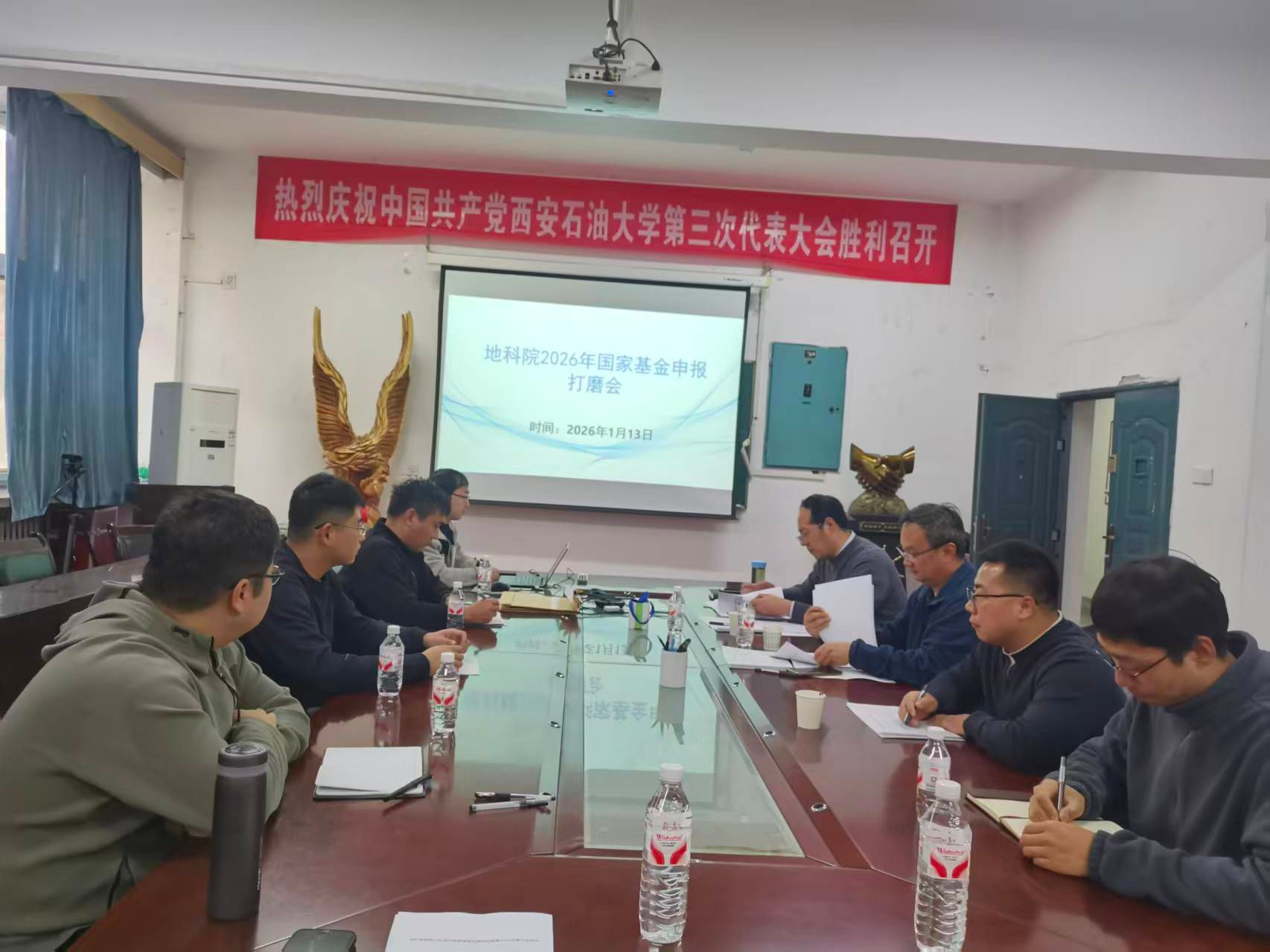 為精準提升國家自然科學基金項目申報質(zhì)量,助力科研人員凝練科學問題、優(yōu)化研究方案,切實增強項目競爭力,1月13日,地球科學與工程學院在雁塔校區(qū)206會議室組織召開2026年國家自然科學基金集中打磨會。會議邀請了具有豐富基金評審經(jīng)驗的陜西省地球物理學會秘書長、中國地球物理學會環(huán)境地球物理專業(yè)委員會副主任委員、長安大學地質(zhì)工程與測繪學院博士生導師邵廣周教授與我院分管科研的副院長曹靜杰教授、院長助理馮旭亮副教授等教師組成指導團隊,學院擬申報2026年度國家自然科學基金項目的教師參加了會議。會議由副院長曹靜杰教授主持。