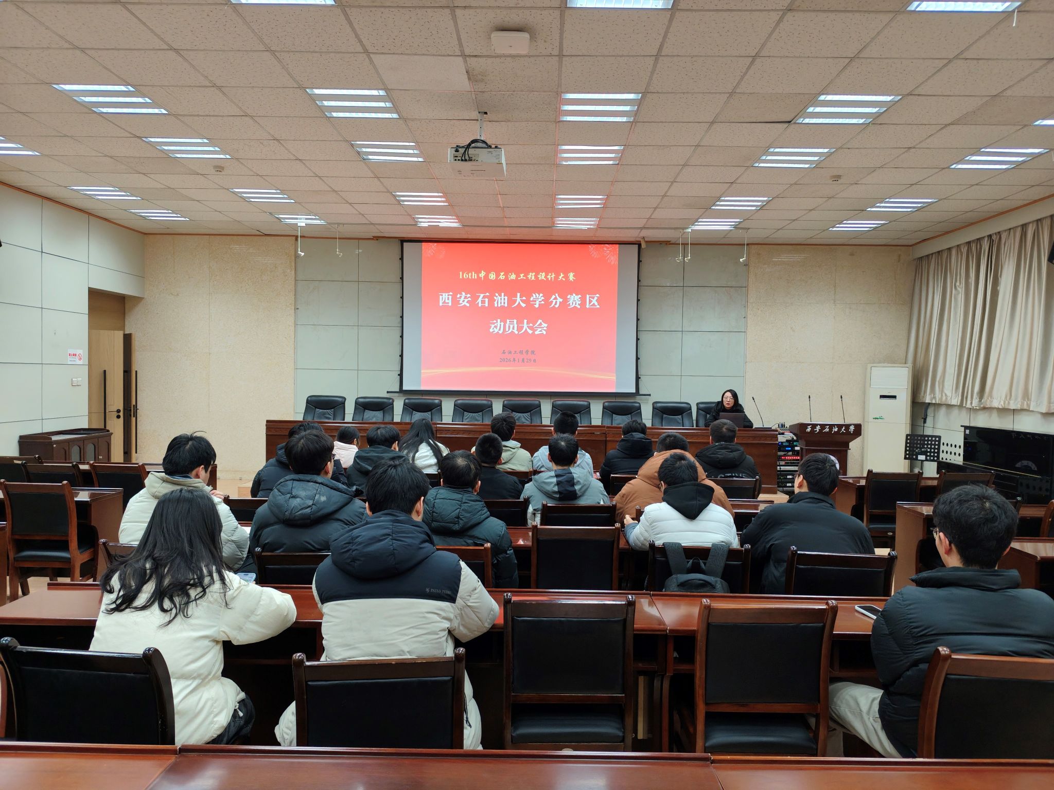 隨后,王小香老師圍繞第十六屆中國(guó)石油工程設(shè)計(jì)大賽的賽程安排、主題方向、規(guī)則變化及評(píng)審要點(diǎn)進(jìn)行了系統(tǒng)解讀,并對(duì)學(xué)院在賽事組織、培訓(xùn)安排和資源保障等方面的整體部署作了詳細(xì)說明。她從團(tuán)隊(duì)組建、參賽策略、方案設(shè)計(jì)到成果答辯等關(guān)鍵環(huán)節(jié)提出了針對(duì)性建議,進(jìn)一步增強(qiáng)了同學(xué)們的備賽信心和參賽針對(duì)性。