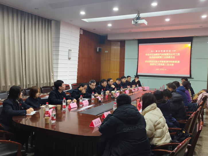 1月29日,中石油煤層氣有限責(zé)任公司工程技術(shù)研究院第三黨支部走進(jìn)校園,與新能源科學(xué)與工程系教工黨支部聯(lián)合開(kāi)展了主題為“黨建引領(lǐng),業(yè)務(wù)互促”的支部共建活動(dòng)。此次活動(dòng)旨在通過(guò)校企深度聯(lián)動(dòng),探索黨建與科研教學(xué)深度融合的新路徑。煤層氣公司工程技術(shù)研究院院長(zhǎng)郝鵬程、一級(jí)工程師孫斌,新能源學(xué)院黨委書(shū)記顏庭星、石油工程學(xué)院副院長(zhǎng)張明、新能源科學(xué)與工程系教工黨支部書(shū)記王洋及雙方黨員代表等20余人參加此次活動(dòng)。