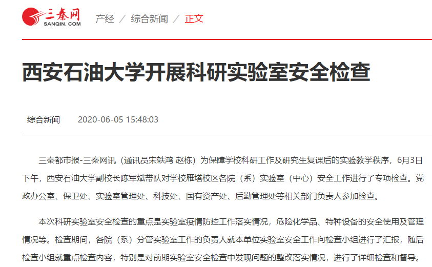 【三秦網(wǎng)】西安石油大學(xué)開(kāi)展科研實(shí)驗(yàn)室安全檢查