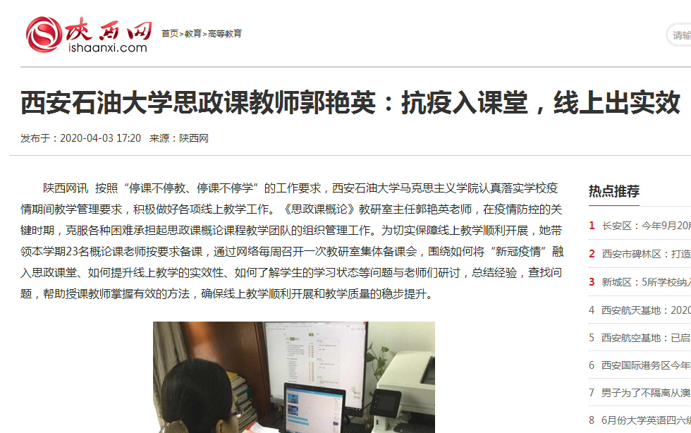 【陜西網(wǎng)】西安石油大學(xué)思政課教師郭艷英:抗疫入課堂,線上出實(shí)效