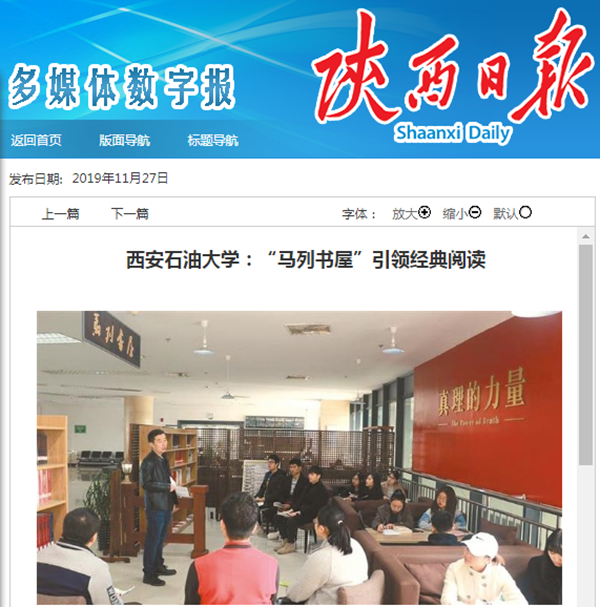 【陜西日報】西安石油大學(xué):“馬列書屋”引領(lǐng)經(jīng)典閱讀