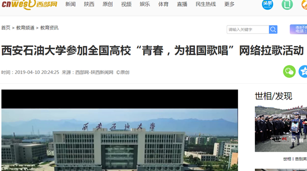 【西部網(wǎng)】西安石油大學(xué)參加全國高?!扒啻?,為祖國歌唱”網(wǎng)絡(luò)拉歌活動(dòng)