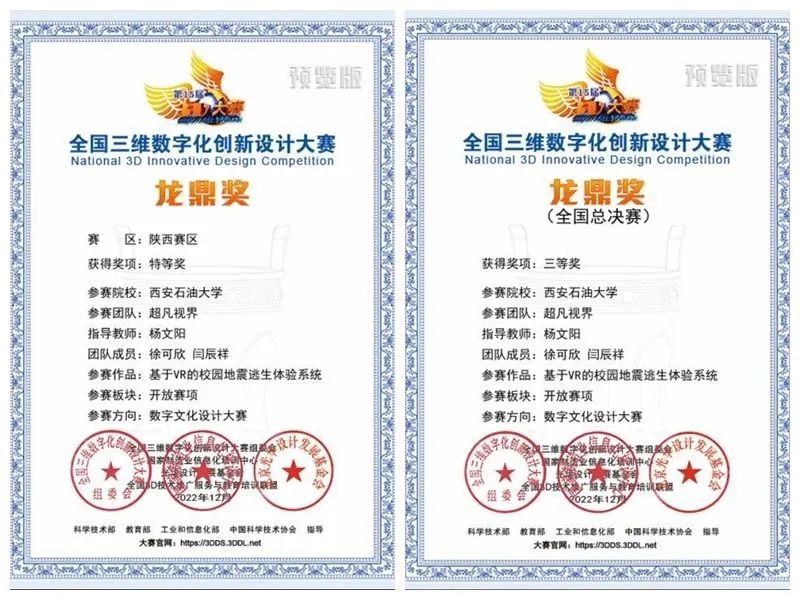 近日,土耳其東南部地區(qū)發(fā)生連續(xù)7.8級地震,造成較大人員傷亡。在地震中,我們?nèi)绾慰茖W(xué)避險將傷害降到最低呢?我校徐可欣和閆辰祥2位同學(xué)在計算機學(xué)院教師楊文陽的指導(dǎo)下組成“超凡視界”團隊設(shè)計了數(shù)字文化設(shè)計類作品——《基于VR的校園地震逃生體驗系統(tǒng)》,致力于提高地震中防災(zāi)避險的意識和能力,獲得陜西賽區(qū)特等獎、全國總決賽三等獎的佳績。