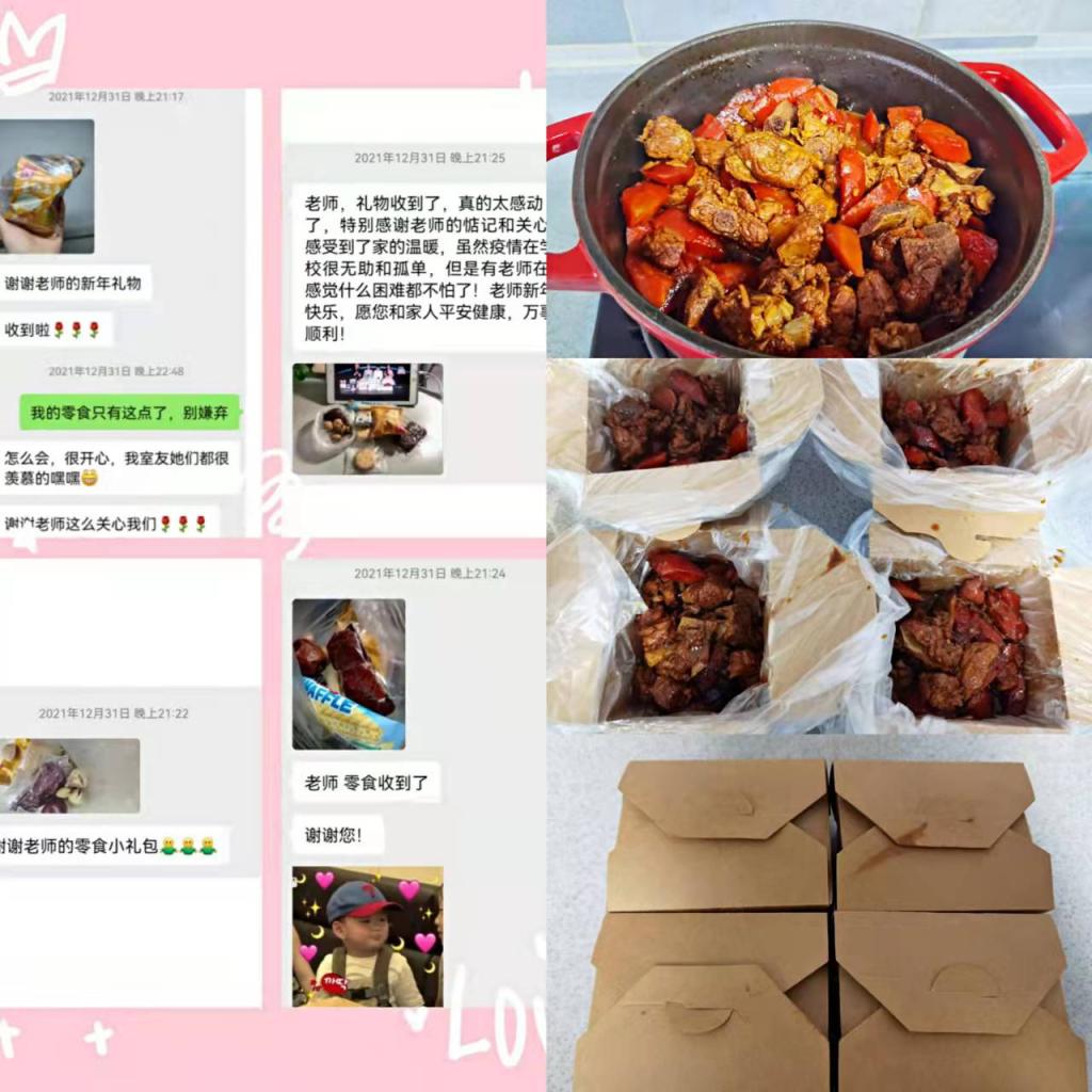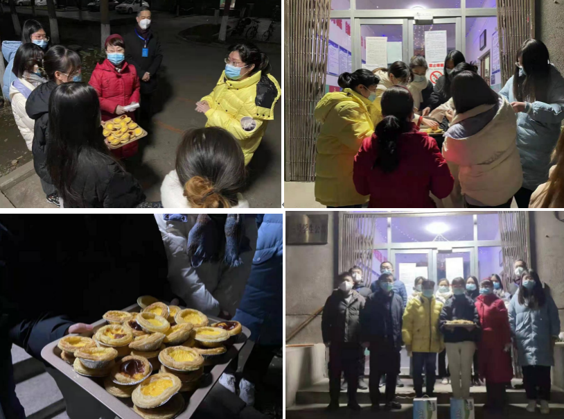 有一種甜刻入記憶,有一種香沉入心田。經(jīng)濟(jì)管理學(xué)院人力黨支部朱海娟老師用了整整一下午的時(shí)間烘焙了兩烤箱的蛋撻,并且和楊睿娟老師一同將剛出爐的食物第一時(shí)間送到研究生志愿者手中。夜幕襯托著食物騰騰熱氣暖到心間,冬日的蕭瑟抵不過蛋撻入口的香甜,志愿者一天的辛苦也隨著滿滿的甜蜜在冷風(fēng)中消逝,金黃的蛋撻不僅甜了嘴巴更融了寒冷。一個(gè)人遇到好老師是人生的幸運(yùn),一個(gè)學(xué)校擁有好老師是學(xué)校的光榮,一個(gè)民族源源不斷涌現(xiàn)出一批又一批好老師則是民族的希望。經(jīng)濟(jì)管理學(xué)院的老師踐行了教師的職責(zé)與使命,他們以身作則的工作態(tài)度教會(huì)學(xué)生盡職盡責(zé),他們無微不至的體貼與關(guān)懷更帶給了學(xué)生愛與希望,如果疫情是電閃雷鳴的狂風(fēng)暴雨,那經(jīng)管師生情就是雨后最美的彩虹。