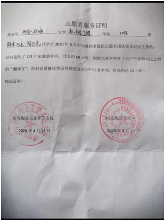 5月份,在不耽誤學(xué)校的網(wǎng)絡(luò)課程的同時(shí),阿米乃木?阿巴克利用課下時(shí)間去當(dāng)?shù)氐拇逦瘯?huì)幫忙,擔(dān)任村民委員會(huì)黨建辦協(xié)管員,準(zhǔn)備黨課資料,整理黨員檔案,錄入智慧黨建系統(tǒng)等工作。在村委會(huì)幫忙的這段日子里,她深深的被身邊各行各業(yè)優(yōu)秀的黨員事跡感動(dòng)著,為了積極向黨組織靠攏,她明確表示回校后將向?qū)W院遞交自己的第一份入黨申請(qǐng)書(shū)。