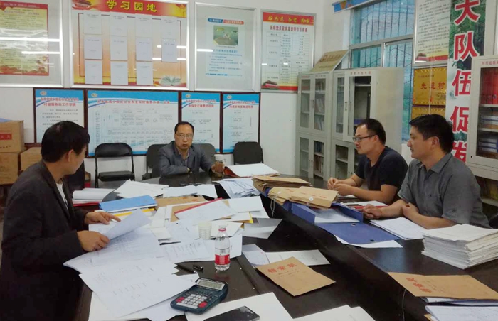侯陽(yáng)(右二)在堅(jiān)固村整理精準(zhǔn)幫扶臺(tái)賬