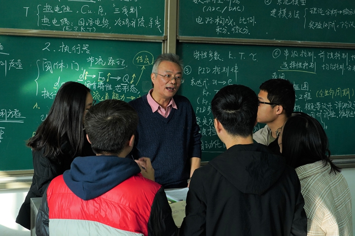 “師者,所以傳道授業(yè)解惑也”?;匦9ぷ髦蟮慕?0年來,汪躍龍老師先后承擔(dān)過13門課程的教學(xué)任務(wù),每年大幅超額完成學(xué)校規(guī)定的教學(xué)工作量。作為專業(yè)負(fù)責(zé)人,不論日常科研和教學(xué)任務(wù)多么忙碌,汪老師始終以身作則,堅(jiān)持高標(biāo)準(zhǔn)完成各項(xiàng)工作。他經(jīng)常是白天在鄠邑校區(qū)上完課以后,晚上加班加點(diǎn)趕回雁塔校區(qū)繼續(xù)工作,不論是寫材料、看文獻(xiàn)、做實(shí)驗(yàn),還是繼續(xù)給研究生上課,吃一個(gè)肉夾饃、喝兩口水繼續(xù)投入“戰(zhàn)斗”已經(jīng)成為他的工作常態(tài)。擔(dān)心學(xué)生理解不好課程內(nèi)容,汪老師上課從來不照著PPT上課,而是把重點(diǎn)內(nèi)容和疑難問題工工整整用粉筆寫在黑板上,類似工業(yè)儀表等內(nèi)部構(gòu)造復(fù)雜難懂的重要知識點(diǎn),汪老師更是在黑板上一邊一筆筆親自畫圖一邊給學(xué)生耐心講解。每次課間,他總會不厭其煩幫助學(xué)生解疑答惑,鼓勵(lì)學(xué)生刻苦鉆研、揚(yáng)長避短。在學(xué)生實(shí)驗(yàn)、測試和研究不斷失敗或者遇到瓶頸問題一籌莫展時(shí),他總會專門給學(xué)生“開個(gè)小灶”,幫助學(xué)生分析癥結(jié)。