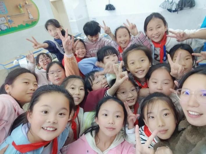 在這彌足珍貴的一年支教的日子里,我站上了我夢(mèng)寐以求的三尺講臺(tái),每節(jié)課上孩子們那一雙雙眼睛里看到的是知識(shí),而我看到的是純潔與坦誠。這段時(shí)間對(duì)我來說最大的收獲是擁有了一種強(qiáng)烈而又真實(shí)的幸福感和滿足感。這種幸福來源于學(xué)生對(duì)我的認(rèn)可與喜愛,是從什么時(shí)候開始的呢,是他們問我“老師你明年還帶我們嗎”“老師我們班同學(xué)都可喜歡你了”“老師你什么時(shí)候走啊”“你走的時(shí)候可一定要給我們說,不要偷偷走”的時(shí)候,是上課前有學(xué)生專門來辦公室找我跟我一起去教室的時(shí)候,是我們一起合照的時(shí)候孩子們天真而純潔的笑臉,是下課時(shí)一群五年級(jí)的女生抱著我不讓我走的時(shí)候,也許是給二年級(jí)上社團(tuán)活動(dòng)課,走過二年級(jí)的樓道被學(xué)生簇?fù)砥饋泶蛘泻舻臅r(shí)候,這段時(shí)間的點(diǎn)點(diǎn)滴滴在我腦海中留下了深刻的烙印。