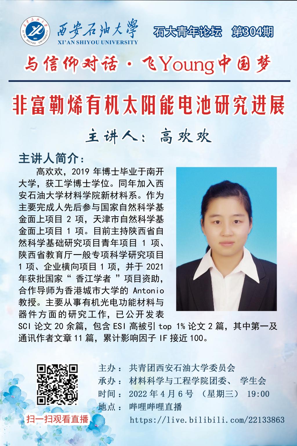 石大青年論壇第304期:非富勒烯有機太陽能電池研究進展