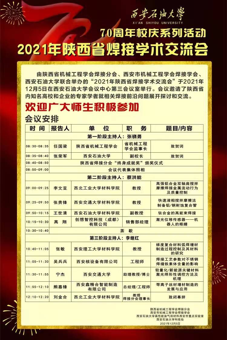 西安石油大學(xué)七十年校慶系列活動——2021年陜西省焊接學(xué)術(shù)交流會