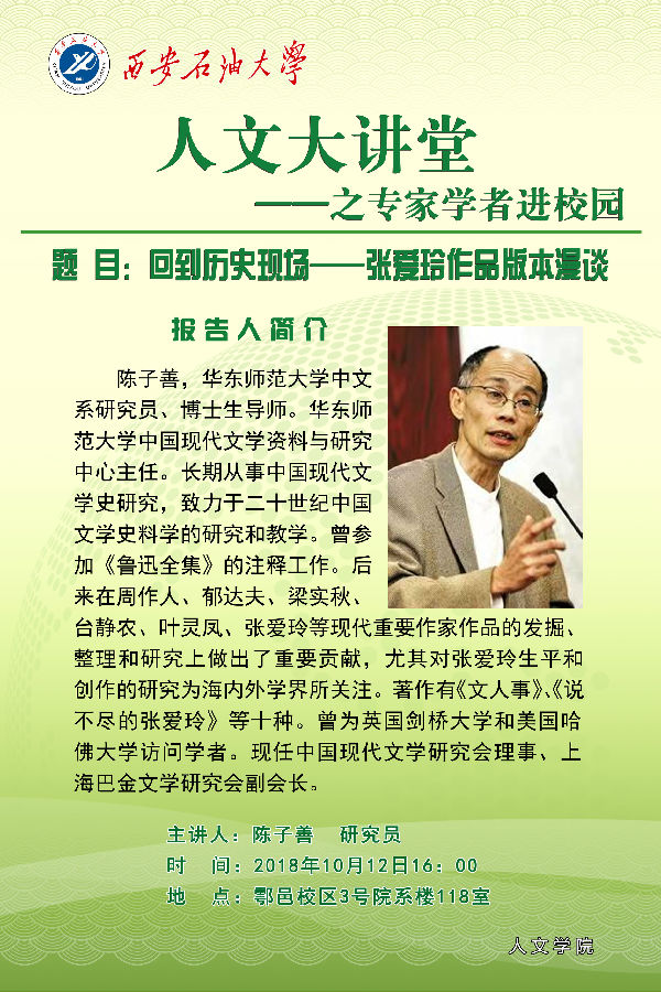 人文大講堂之專家學(xué)者進(jìn)校園:回到歷史現(xiàn)場(chǎng)——張愛(ài)玲作品版本漫談