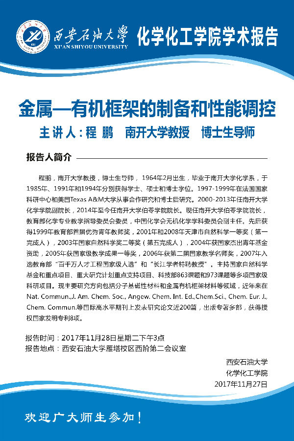 作者:化學(xué)化工學(xué)院 發(fā)布時(shí)間:2017-11-28 08:41:07 瀏覽: